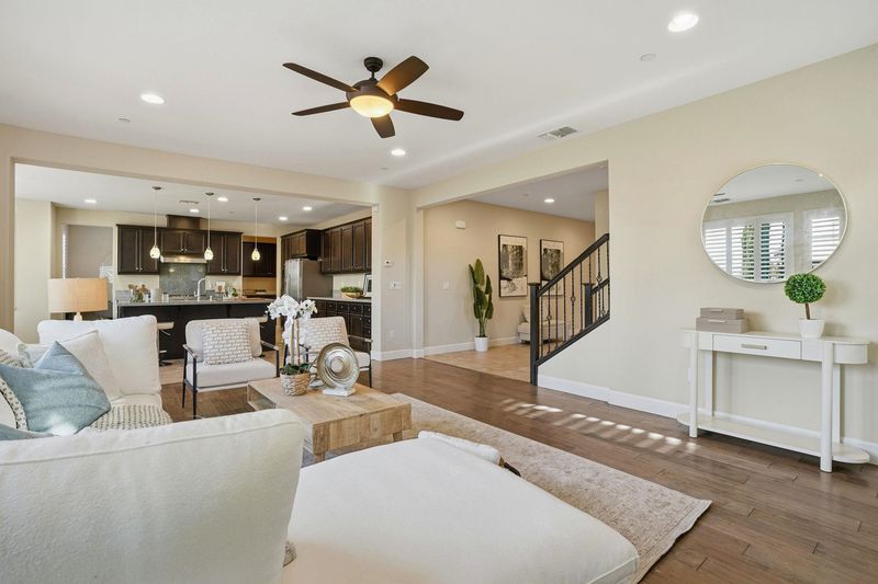 Welcome to 1110 S Vecindad, a beautifully maintained and thoughtfully designed home built in 2016 by Tri Pointe Homes. This 2,887-square-foot residence offers 4 sun-filled bedrooms, 3.5 bathrooms, a convenient study with a built-in desk just off the kitchen, and a spacious loft that serves as a second living area or flexible space. A ground-floor bedroom with an en-suite bathroom provides ideal accommodations for guests or extended family. The contemporary kitchen is perfectly designed for entertaining, featuring a large island and seamless flow into the dining and living areas. Additional highlights include fresh interior paint, hardwood floors, his-and-hers closets in the primary suite, a walk-in pantry, and a low-maintenance yard. Ideally located just minutes from top-rated schools (less than 1/2 mile away), Hansen Park, Safeway, major freeways, and more, this gorgeous home truly has it all.