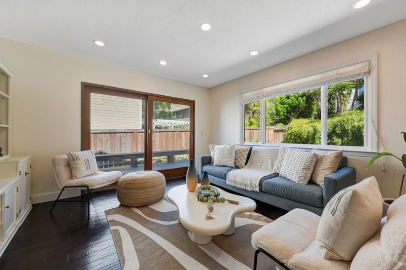 Nestled in highly desirable Vallemar of Pacifica, this amazing home blends coastal charm with modern comfort. Welcoming front courtyard with an inviting swing in a majestic tree sets the stage for an enchanting experience. The entry opens to dramatic vaulted ceilings, exposed beams & newer floor-to-ceiling dual-pane windows that frame lush greenery. The open-concept living/dining areas flow seamlessly, highlighted by a cozy fireplace & spectacular Alora suspension globe lighting. The updated kitchen offers ample cabinetry, newer stainless-steel appliances & generous counter space with bar seating. The family room off the kitchen offers access to a wonderful deck & bench seating. There is a convenient guest 1/2 bath & easy access to the oversized two-car garage with laundry & large loft storage. Upstairs offers 3 bedrooms with generous walk-in closets with built-ins & 2 remodeled baths. Step outside to an amazing pergola-covered patio, level lawn, and mature landscaping, perfect for relaxing or hosting gatherings. An outdoor shower adds a touch of coastal convenience. Located just minutes from beaches, hiking trails, and local amenities, this home offers the best of Pacifica living with easy access to SF and the Peninsula. A rare opportunity in the sought-after Vallemar community.