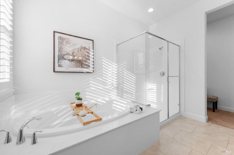 Double Sinks, Shower Stall(s), Tub, Window