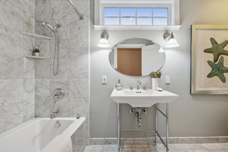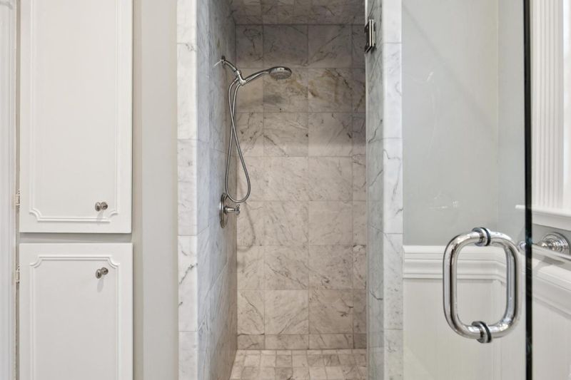 - Marble, Stall Shower, Shower and Tub, Solid Surface, Tile, Tub, Updated Bath