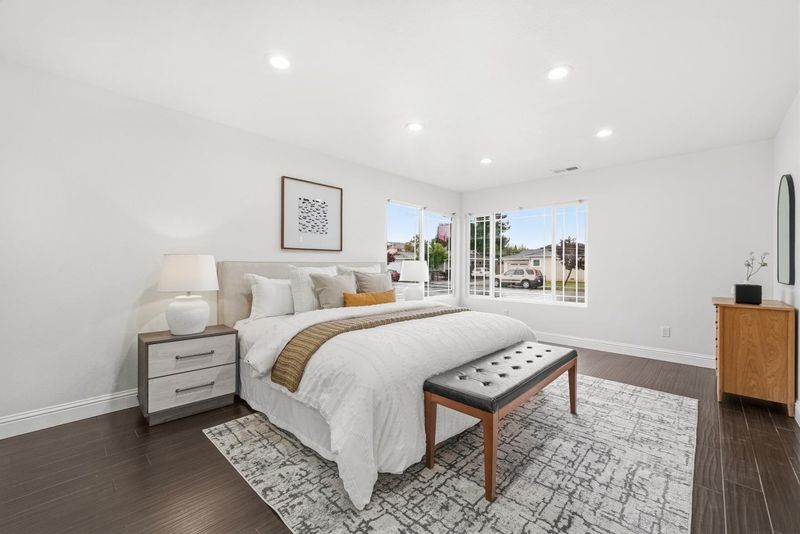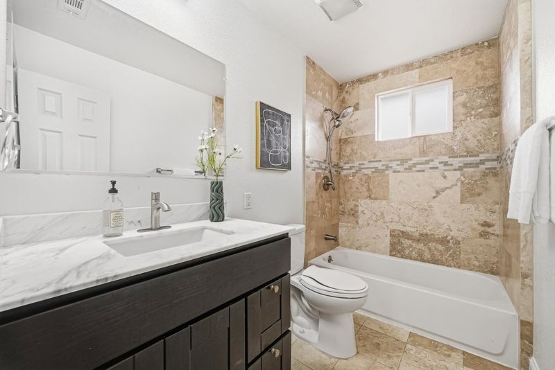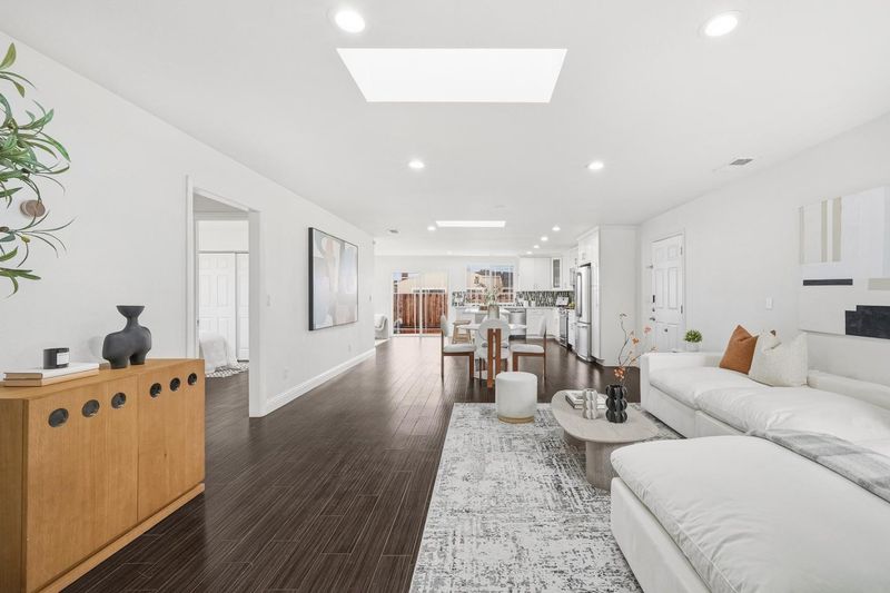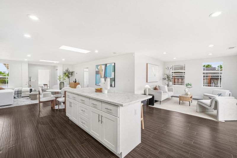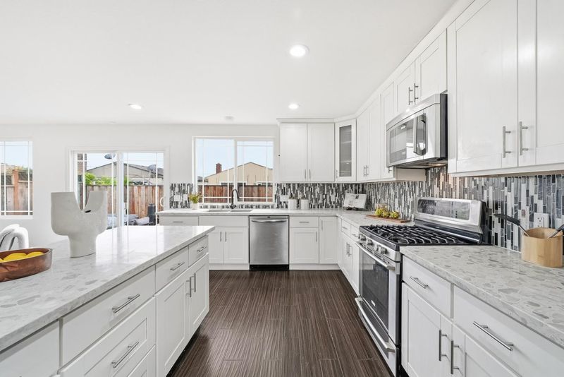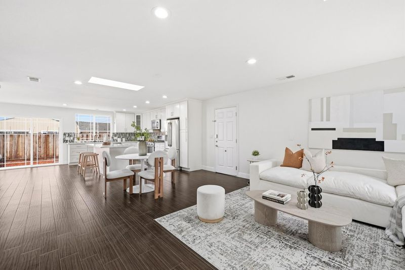 RARE FIND!! Completely renovated wall-to-wall in 2014, this bright and modern 3-bedroom, 2-bath home offers approximately 1,656 sq ft of stylish and comfortable living space, featuring an inviting living room with skylights and recessed lighting, an updated chef's kitchen with stainless steel appliances, quartz countertops, a large center island, and ample cabinetry, along with a spacious primary suite that includes an oversized walk-in closet, dual vanities, a separate shower, and a luxurious jetted tub; both the front and backyard are newly landscaped with a pool perfect for relaxing or entertaining, all ideally located near Mirabeau Park and just a short drive to major tech campuses like Tesla, Meta, and Amazon, with easy access to I-880 and Highway 84 and abundant dining and entertainment options just 5-7 minutes away-Welcome Home!