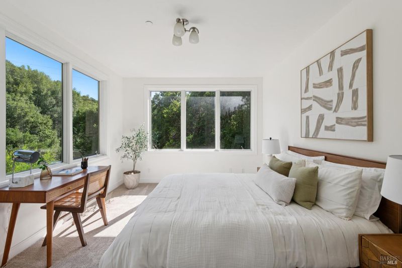 Custom built in 2007 by a contractor for a contractor, 115 Piper Lane is a rare Oak Manor offering, overbuilt to the highest standards and peacefully positioned at the end of a private road on a desirable street-to-street lot. Surrounded by nature with sweeping hillside views, this 3 bed, 3 bath home blends exceptional craftsmanship with the serenity that defines Fairfax living. The main level features an expansive living room, dining area, powder room, and well-appointed kitchen with walk-out deck, creating a seamless space for both everyday living and entertaining. Numerous skylights bathe the interiors in natural light, enhancing the home's warm and inviting feel. One level below, the private primary suite serves as a true retreat with a walk-in closet, stacked washer/dryer, wet bar, spa-like en suite bath with soaking tub and oversized shower, plus a private deck off the bedroom. The lowest level offers two additional bedrooms, a laundry room, and wine closet, providing flexibility for guests, family, or work-from-home needs. Tucked into the sought-after Oak Manor neighborhood, this home feels like a peaceful mountain escape yet is just a stone's throw from Manor Elementary and an easy stroll to vibrant downtown Fairfax's shops, restaurants, and theater. World-class hiking and biking trails are right outside your door, with the best of Marin recreation within easy reach. This home is one of one and is not to be missed.