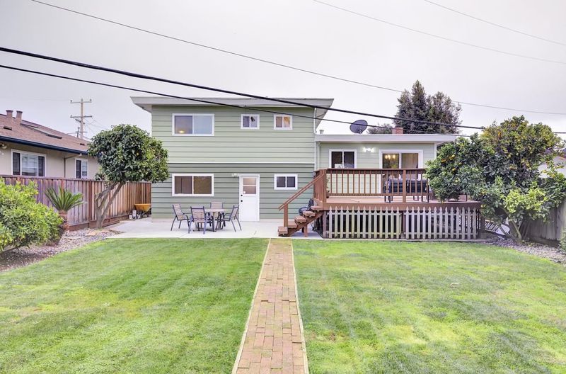 In a serene, cherished neighborhood. Soft green siding, trimmed in pristine white. Brick-lined accents, quietly bright. A graceful two-story home stands with ease and dignity| Boasting the largest lot in the neighborhood. Front and rear lawns stretch lush and expansive, a verdant canvas for gatherings, play, and repose| An open kitchen, dining, and living space, bathed in sunlight that dances through generous windows| Three tranquil bedrooms await upstairs, private retreats suffused with calm and light| Downstairs, a versatile room stands ready, perfect for guests, study, or quiet reflection| Out back, the gentle breeze stirs citrus trees and shade. A wooden deck overlooks a backyard of abundant greenery| A sanctuary for relaxation, laughter, and connection| An 8-minute bike ride to downtown San Mateo| Walk to bay trail, Coyote Point golf, yachts, and a magical playground where joy and wonder abound| Located in the heart of the Bay Area. 20 minutes to San Francisco. This home offers the perfect commute. Connecting your work, play, and daily life with ease| A place to gather, to grow, to explore. Not merely a house, but a true-hearted home. A home of magic awaiting you in the New Year!