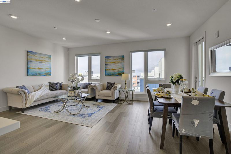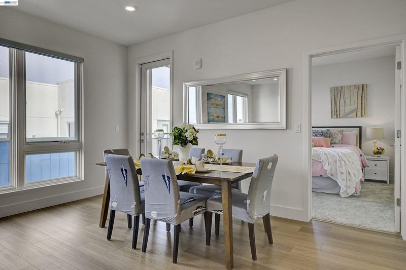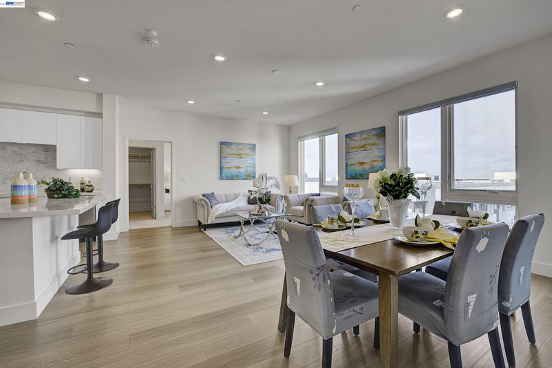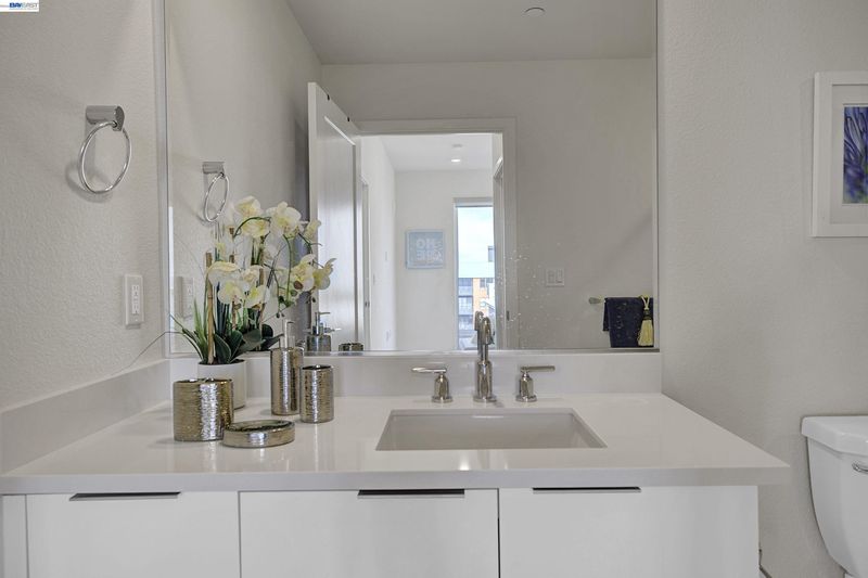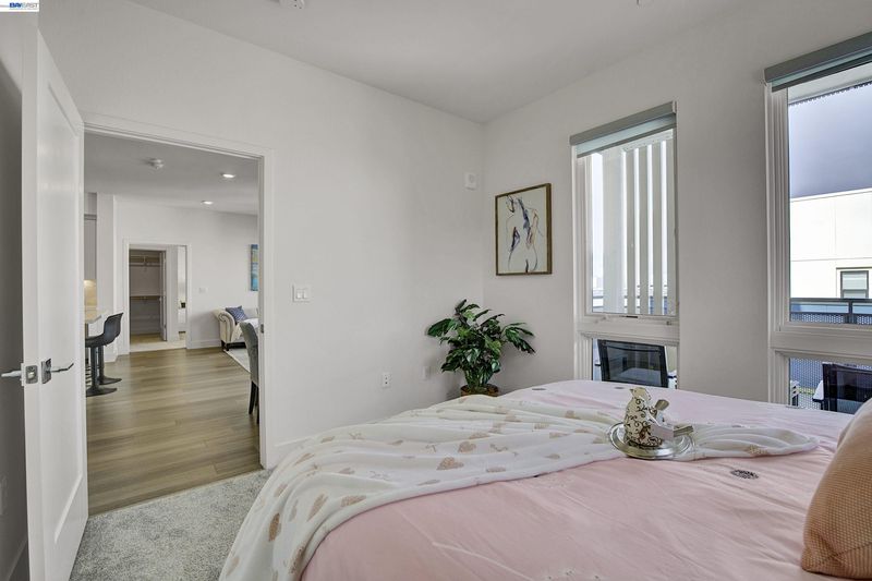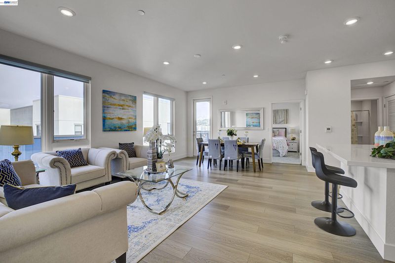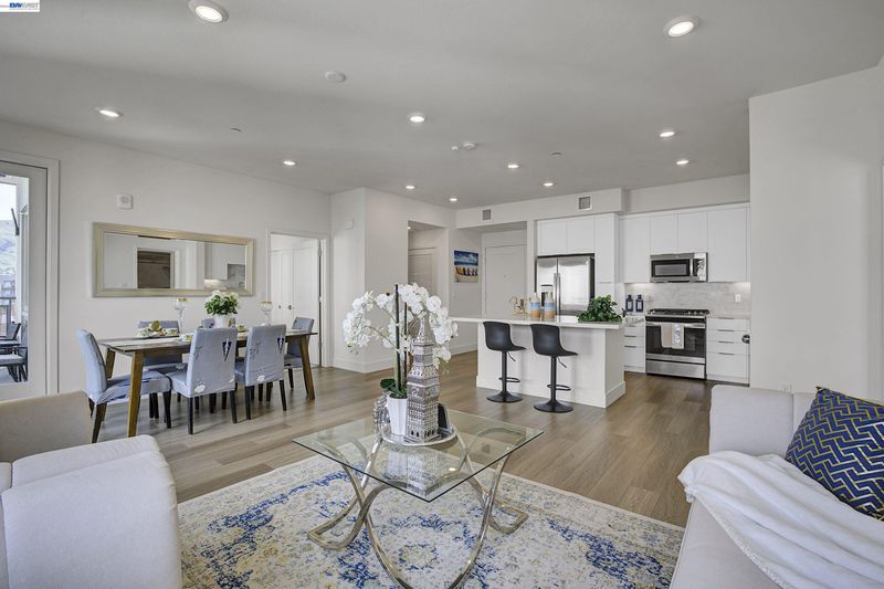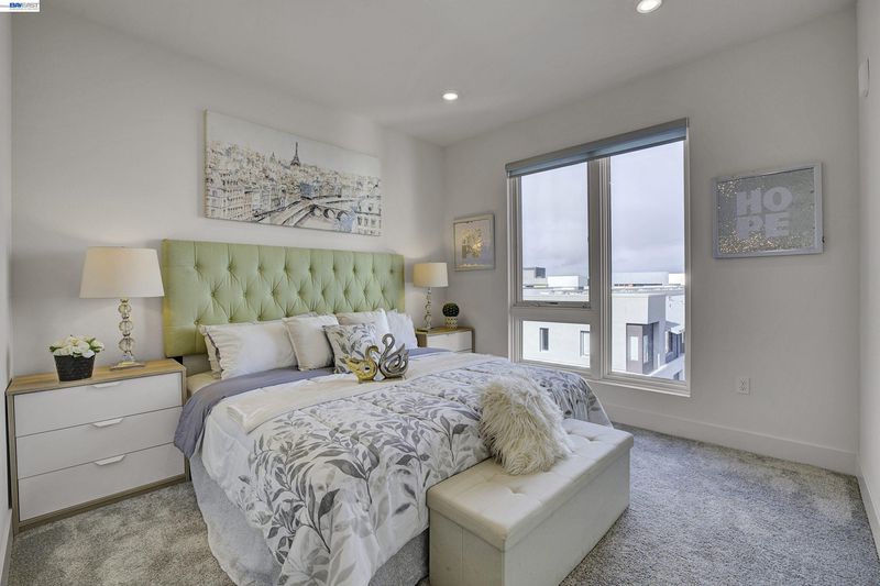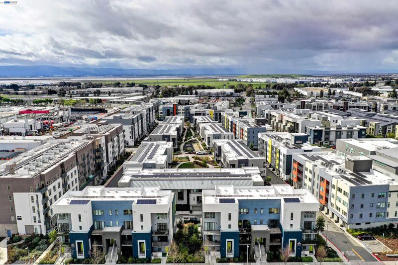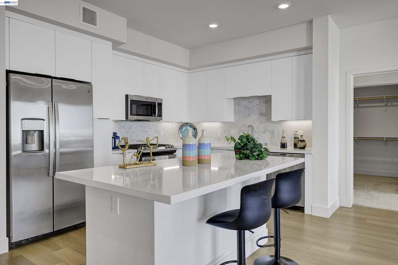 Bright and modern 2BR/2BA home located in the desirable Innovation community. This light-filled residence features an open floor plan with abundant natural light and neighborhood/hill views. The chef’s kitchen includes ceiling-height cabinetry, quartz island, built-in stainless steel appliances, and gas cooktop. Bedrooms are positioned on opposite sides of the living area for added privacy—ideal for guests or a home office setup. The spacious primary suite offers a large walk-in closet and en-suite bath. In-unit washer and dryer included. Secure garage with 2-car tandem parking and additional storage. HOA covers water, gas. Community amenities include clubhouse, fitness center, pool, and BBQ area. Walking distance to Lila Bringhurst Elementary, parks, BART, shopping, dining, and major employers with easy freeway access. Move-in ready and perfectly located for comfort and convenience.