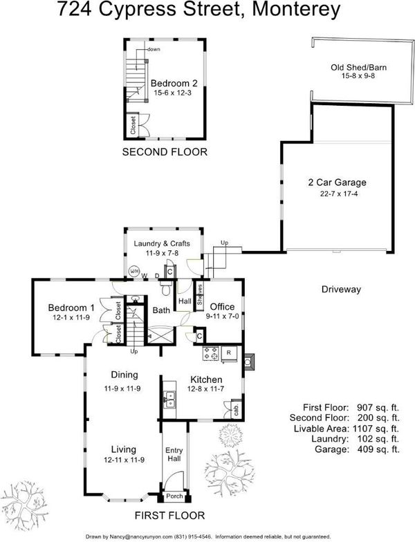 Some homes have a story. This one has chapters. Built circa 1938, this storybook cottage at 724 Cypress Street sits on three lots - one parcel - framed by ancient oaks draped in Spanish moss with sweeping views of the Monterey Bay that stop you mid-sentence. At 1,085 square feet, it's intimate without apology, with hardwood floors, a sun-drenched bay window, and a layout that just makes sense: primary bedroom on the ground floor and a room upstairs with panoramic views for a guest room or creative retreat. A quiet office tucks away for focused work, and an enclosed porch, complete with washer/dryer hookups, adds everyday practicality without sacrificing the cottage charm. Outside, the ironwork gate, the creamy stucco facade, the mature tree canopy - it all feels like Monterey. But here's what makes this property truly rare: the land. Three lots with R-1 zoning and ocean views in a conveniently located neighborhood perched above Cannery Row and the Monterey Bay Aquarium. Whether you dream of remodeling and/or building an ADU or simply living in something out of a storybook, this property holds both possibilities. Opportunities like this rarely come twice on the same street. How will this chapter end?