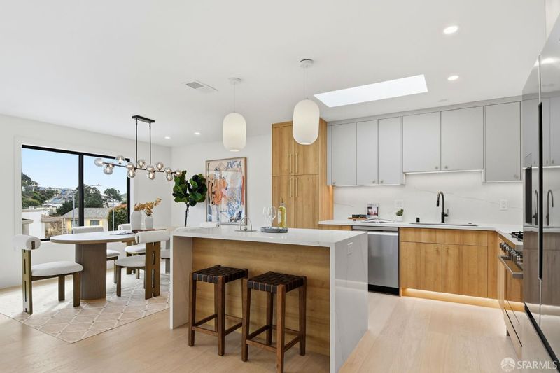 Set on the quiet cul-de-sac of Clairview Court, one of Midtown Terrace's most prestigious streets, this fully detached home is fresh off a permitted, top-of the line renovation. A great deal of craft went into reimagining the home's structual plan in this down-to-the-studs renovation, achieving four bedrooms and a phenomenal open floor plan that creates an ideal communal space. Anchored on one end by a cozy, tile-clad fireplace and framed on the other by a dramatic open kitchen and dining area, this room has beautiful views over the hills. The stunning kitchen includes a beautiful quartz waterfall island and full slab wall, custom cabinets with corner and waste bin drawers, designer lighting, and new Bosch appliances. 2 full-sized bedrooms, including a large ensuite primary complement the main level of the home while downstairs hosts 2 additional bedrooms and a luxuriously-sized full bathroom. Wide plank white oak flooring runs throughout the home which has been completely rewired, and features a brand-new furnace and laundry area. Every detail has been carefully considered, from the designer tiles to the curated lighting. Don't miss the rare chance to own a home on this coveted block!