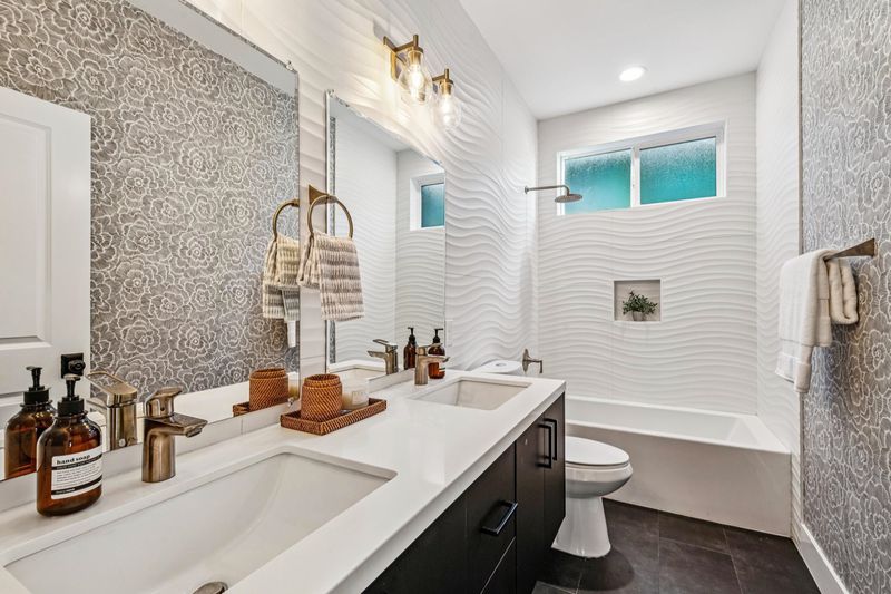 - Shower Over Tub, Solid Surface, Tile, Double Vanity, Window