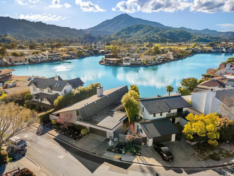 Imagine waking up to panoramic views of Mount Tamalpais and the shimmering water from your own private waterfront retreat. Tucked away on an cul-de-sac, this rare single-story home perfectly balances peaceful seclusion with easy access to the best of Marin living. The interior flows effortlessly, featuring a freshly updated kitchen with quartz countertops that opens into a cozy family room. For grander moments, the spacious living and dining areas boast a stunning floor-to-ceiling fireplace and walls of windows that bring the outdoors in. With a primary suite overlooking the water, two additional bright bedrooms, fresh paint, and brand-new carpeting, this home is entirely move-in ready. While it feels like a hidden escape, you are only minutes from the chic boutiques and gourmet dining of downtown Larkspur, miles of scenic local trails, and the iconic Golden Gate Bridge offering the perfect balance of quiet seclusion and easy urban access, it is a refined, relaxed, and truly effortless place to call home.