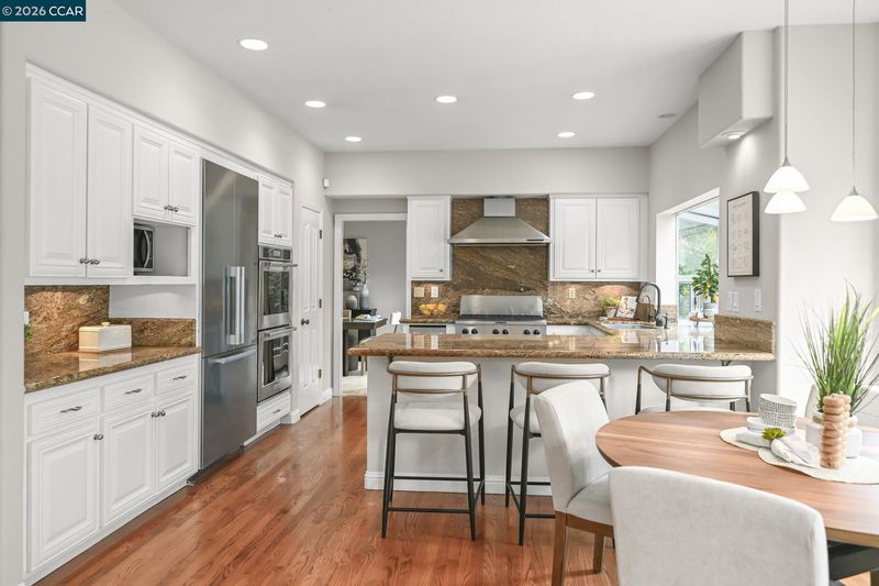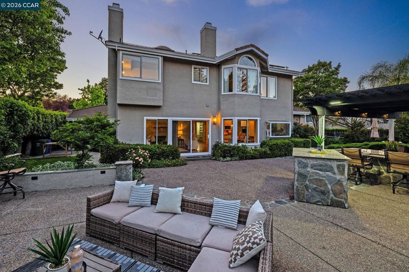 Beautifully maintained 4-bedroom + office, 3.5-bath home offering 3,126 sq ft on a 15,246 sq ft lot in Danville’s sought-after Woodranch community. Light-filled interior features vaulted ceilings, a sweeping staircase, plantation shutters, and an updated kitchen with slab countertops and stainless steel appliances that opens to the family room with built-ins and fireplace. Expansive primary suite includes vaulted ceilings, a sitting area with fireplace, and a spacious en-suite bath with dual vanities, soaking tub, and walk-in shower. The backyard is designed for true indoor-outdoor living, featuring a custom pool and spa with rock waterfall, covered outdoor kitchen with bar seating, built-in BBQ, pergola, and a separate lounge area with stone fireplace. Additional space includes a sport court area and mature landscaping providing privacy and a park-like setting. Woodranch amenities include pool, clubhouse, tennis courts, and greenbelt trails. Located within the award-winning San Ramon Valley School District.