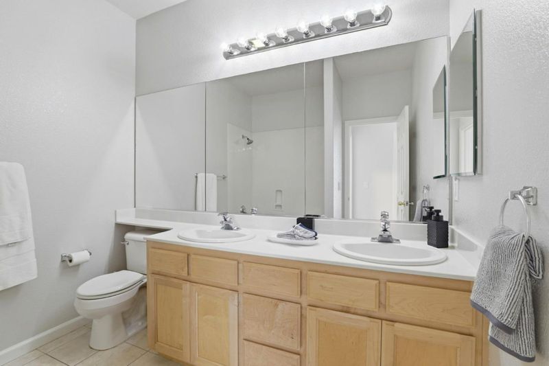 - Double Sinks, Half on Ground Floor, Primary - Oversized Tub, Primary - Stall Shower(s), Shower and Tub, Tile, Tub in Primary Bedroom