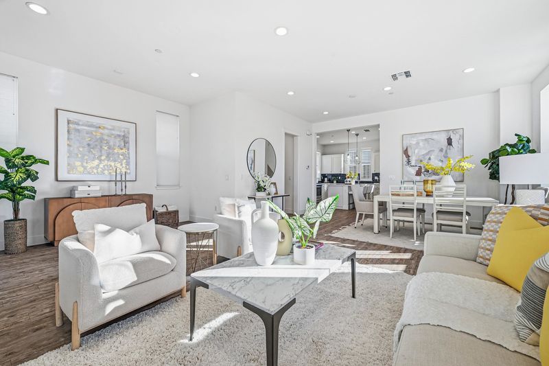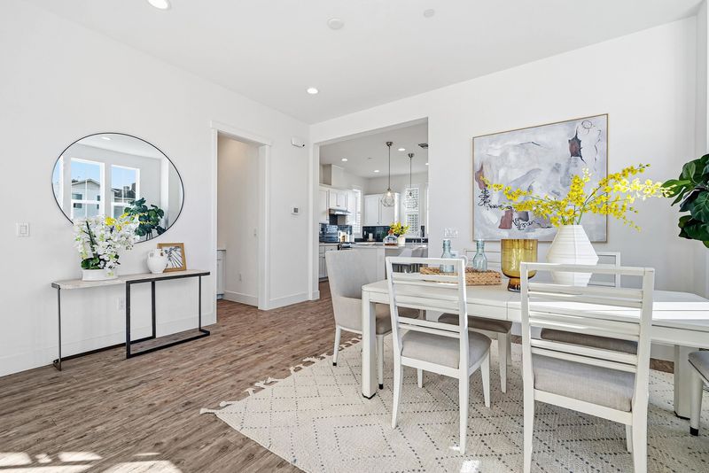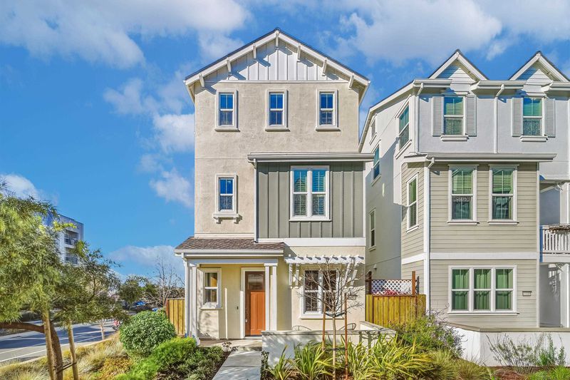 This corner-lot single-family home combines modern elegance with functionality. Spanning 2,412 square feet, the 4B/3.5B residence brims with abundant natural light throughout. On the first floor is a private suite with a bedroom, full bathroom, and kitchenette—perfect for guest hosting, extended family, or a quiet retreat. With a separate entrance, this suite ensures independence and privacy. On the second floor, the soaring 10-foot ceilings and an open-concept design create an inviting, airy atmosphere. The upgraded kitchen is sure to impress, featuring a sleek oversized island, stainless steel appliances, and plenty of space to prepare meals with ease. Adjacent to the kitchen, the dining and living areas flow seamlessly, ideal for both relaxed evenings and lively gatherings. Step outside to the spacious covered patio, a perfect spot to unwind and enjoy the air. The home boasts a mix of upgraded wood flooring and upgraded carpeting. The house is equipped with owned solar panels for energy efficiency. The community is close to Meta and Tesla, among other major employers. The residents enjoy amenities like a park, a kid's playground, BBQ and picnic area. Nearby National Wildlife Refuge offers open space with trails and nature to explore. Easy access to Dumbarton bridge and I-880.