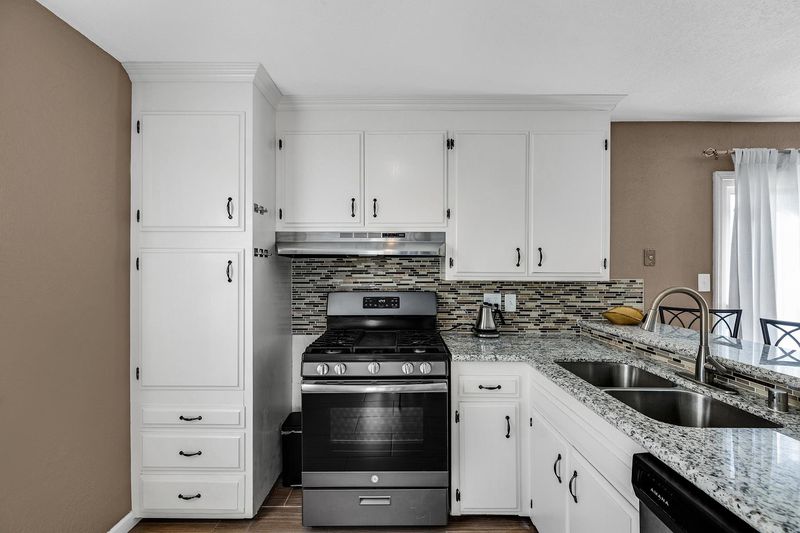 - Dishwasher, Gas Range, Dryer, Washer, Breakfast Bar, Stone Counters, Gas Range/Cooktop