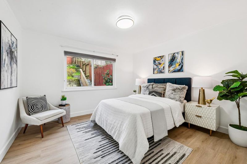 Gorgeous & Exceptional! Nestled in the highly desirable Original Daly City neighborhood, this beautifully updated semi-detached residence is truly move-in ready. Offering 1,512 SQFT of stylish living space (per appraiser) on an expansive 3,000 SQFT lot, the home features coastal views from the top of the backyard, along with 3 spacious bedrooms and 2 full bathrooms. The open, light-filled floor plan showcases newly installed luxury vinyl white oak flooring throughout, a seamless living and dining area, and a modern eat-in kitchen complete with stainless steel appliances and elegant stone countertops. Two fully updated bathrooms with beautiful tile works. One of the bedrooms provides direct access to the low-maintenance backyard and oversized patio, perfect for family gatherings, weekend BBQs, entertaining guests, or simply relaxing outdoors. The lower level offers a separate entrance, a one-car garage with additional storage space, and driveway parking for added convenience. Ideally located with easy access to two BART stations and Highway 280, and perfectly positioned between San Francisco and Silicon Valley, this home combines comfort, convenience, and lifestyle. A must-see gem!