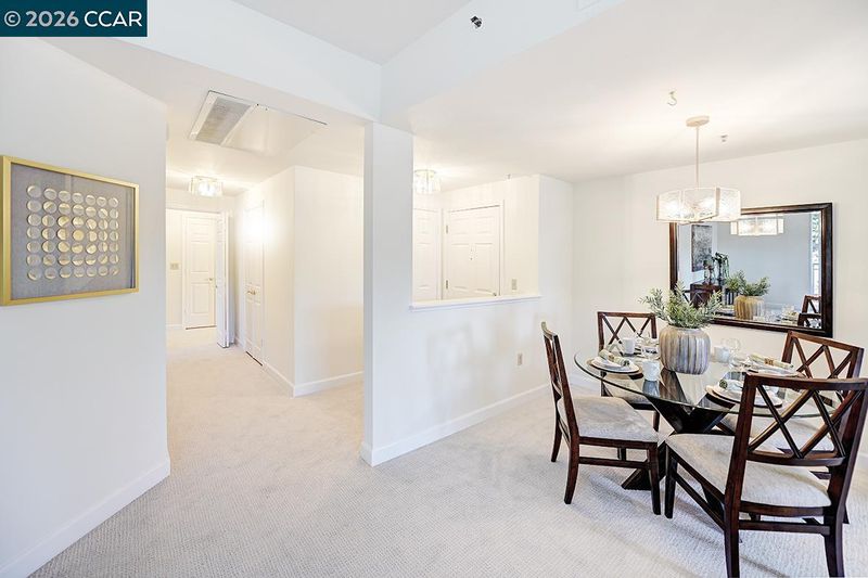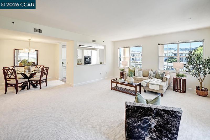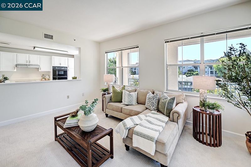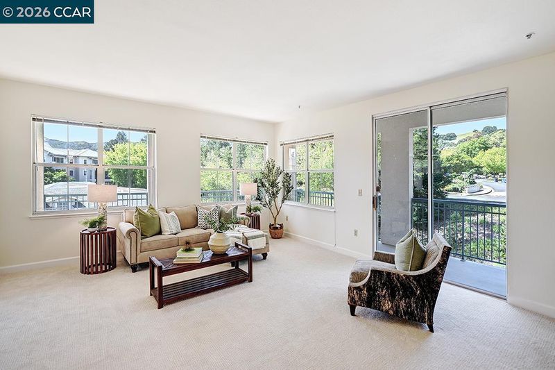 Discover inviting Waterford living in this desirable southwest-facing Westbury model, filled with natural light and peaceful views of trees, the surrounding Rossmoor valley, and rolling hills. A spacious wraparound deck extends from the great room–style living and dining area, ideal for morning coffee or evening relaxation. Freshly painted throughout, the bright interior features updated flooring, custom baseboards, and stylish new fixtures for a move-in ready feel. The open kitchen offers a new stove and hood, plus a newer microwave and refrigerator. The spacious primary suite includes a walk-in closet and private bath with stall shower. Conveniently located near the third-floor storage room and elevator, with an easy walk to dining and amenities. Rare garage parking adds sheltered convenience and value.