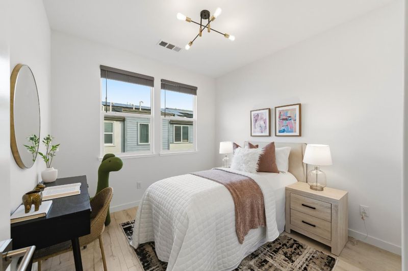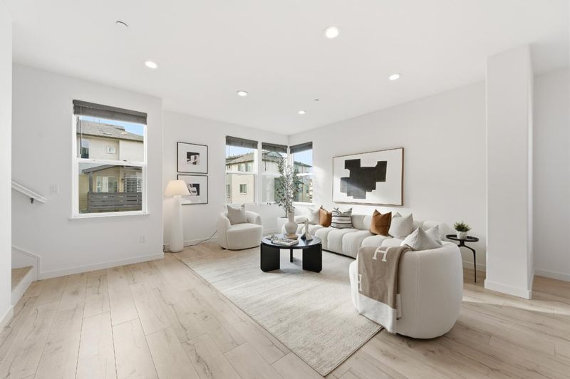 Bright and spacious corner townhouse featuring abundant windows and excellent natural light throughout. Customized blinds provide full blackout for optimal comfort and privacy. The first floor offers a private bedroom suite, ideal for elderly family members, guests, or potential rental income. An open-concept layout with an extra family room seamlessly connects to the outdoor patio, creating an inviting space for everyday living and entertaining. The gourmet kitchen features a granite island and countertops, stainless steel appliances, and elegant glass pendant lighting. Upstairs offers two bedrooms thoughtfully designed to provide privacy for the primary suite, along with ample space for working from home or entertaining. Additional highlights include a side-by-side garage with a 220V outlet, making the home EV-ready. Low HOA dues include trash, water, and solar, resulting in minimal utility costs. Located in a desirable school district with Northwood Elementary School rated 7, ideal for growing families. Conveniently situated with easy access to South Bay and East Bay commutes, close to major tech companies, and minutes from shopping and dining at Milpitas Mall.