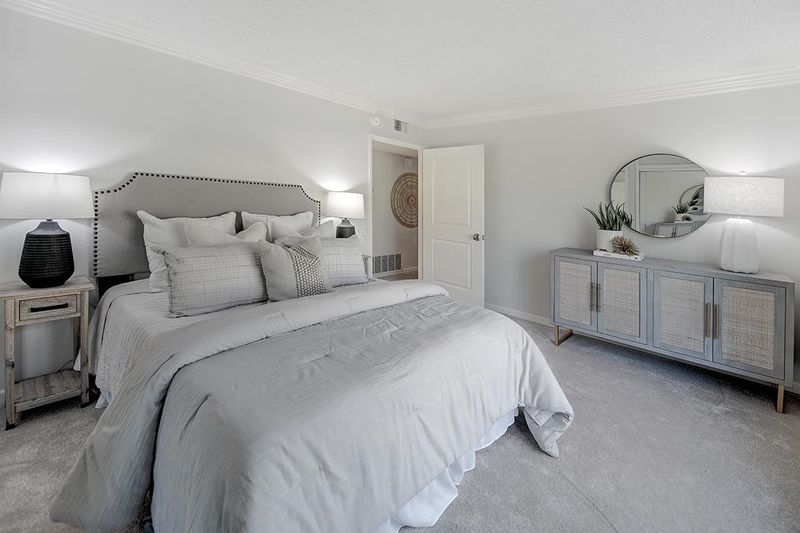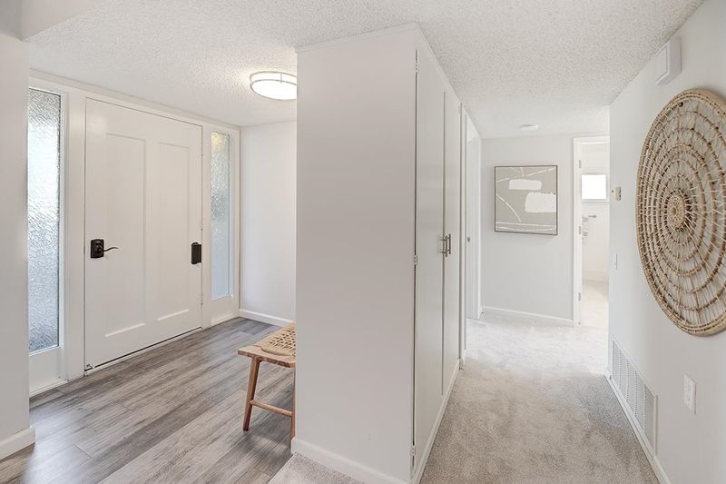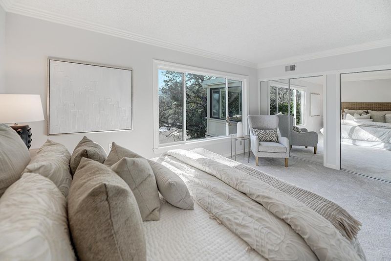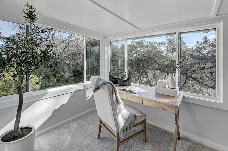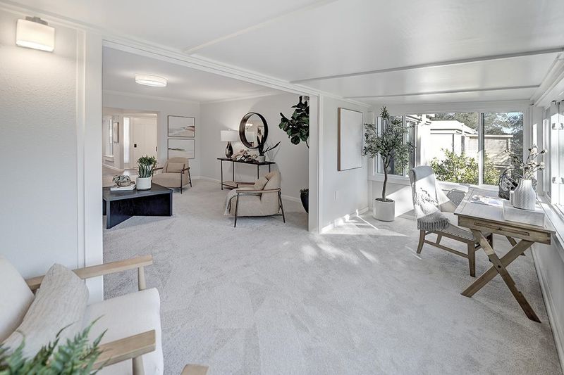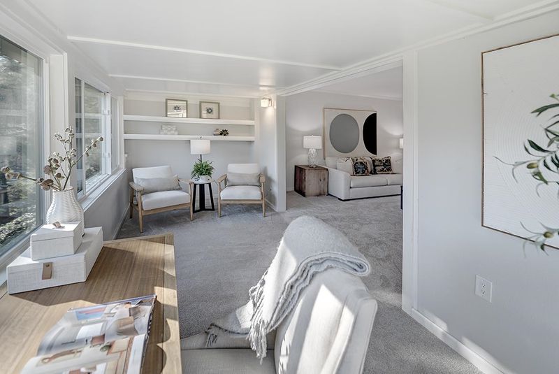 This exquisite home offers a peaceful retreat with abundant privacy, making it the perfect sanctuary. The enclosed light filled veranda with treetop views and built-in shelving, is an ideal spot for a home office or a sunny sitting room. The beautiful kitchen features sleek stainless-steel appliances, under cabinet dimmer lights, soft close cabinet drawers & doors, quartz countertops, designer tile backsplash and recessed lighting. The updated bathroom boasts a stone lined stall shower, quartz countertops, soft-close cabinet drawers & doors, extra-large storage cabinet and a window for extra light. Blending both style and functionality, the kitchen and front bedroom have USB ports. Solar tubes in both the living room and kitchen, new plush carpeting, luxury vinyl flooring in entry and kitchen, crown molding, and double-pane windows add to the home’s charm and comfort. Freshly cleaned and move-in ready, this home is waiting to welcome its new owners! Permits have been pulled an paid for to install a Washer and Dryer.