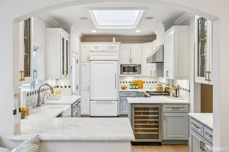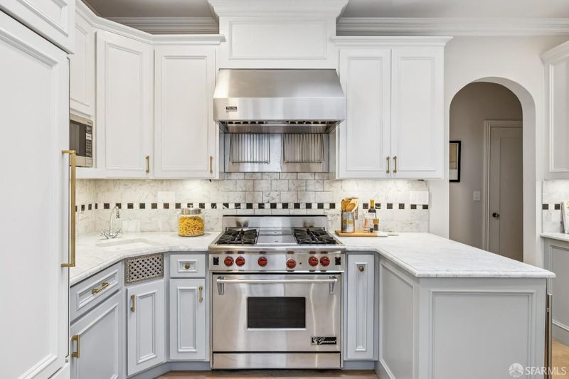 Ideally located and just moments away from Chestnut & Fillmore Street, the Marina Greens, Moscone Park and Fort Mason, this bright top floor condominium has impressive classic period details while boasting all of the conveniences of modern living. Upon entering this unit you will be impressed by the bright living room and formal dining room with original woodwork and doors. The spacious kitchen has a top-of-the-line Wolf range, a Sub-Zero refrigerator, Miele dishwasher and a wine refrigerator. The comfortable breakfast area is the perfect space to start the day and enjoy the morning light. The large bedrooms located in the rear of the property are quiet, private and have spacious closets. In the hallway there is a newly remodeled bathroom with a tub and shower as well as a convenient half bath for guest use. There is shared laundry in the garage as well as hookups in the unit. One car deeded parking, a private view roof deck and storage room complete this incredible offering.