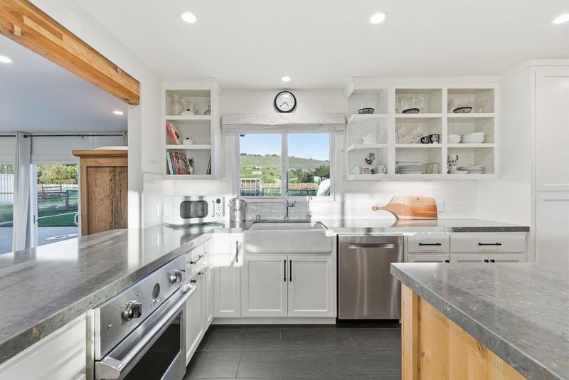 Welcome to this stunningly remodeled 3-bedroom, 2 bath, 2,150 sq. ft home - nestled on just over 2 acres of peaceful countryside. Question is what hasn't been touched? Step inside to an inviting kitchen with quartz countertops, a striking exposed support beam, and a six-burner stovetop perfect for the home chef. The home has been replumbed, fitted with a new HVAC system, and enhanced with a newer roof. A new gas fireplace adds warmth and ambiance to the living space. The exterior has been refreshed with new stucco, durable Hardie board siding along the front, and owned solar. The spacious laundry room offers an epoxy-coated floor and a utility sink for convenience. The luxurious primary suite featuring double sheet-rocked walls for improved soundproofing, two walk-in closets, and a beautifully remodeled ensuite bathroom. Dual sinks, a large walk-in shower that easily converts to a steam shower, and a soaking tub equipped with a heater to keep the water warm. Fully fenced backyard with a designated dog area. The property is set up for animals with goat pens, a horse stall barn, and a chicken coop. Don't miss your opportunity to own this truly special property.