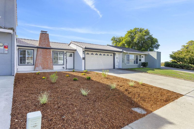 Experience modern comfort and effortless living in this beautifully renovated, move-in-ready attached NE facing single-family home. Designed with clean lines, a neutral color palette, and abundant natural light, this residence offers a thoughtfully curated open-concept layout ideal for today’s lifestyle. The spacious living room features a classic brick fireplace and large windows, flowing seamlessly into the dining area—perfect for entertaining. The gourmet kitchen showcases stainless steel appliances, sleek white cabinetry, quartz countertops, and a generous breakfast bar. A dedicated laundry room includes a high-efficiency washer and dryer with additional storage. The primary suite serves as a peaceful retreat with a walk-in closet and sliding glass doors opening to the private backyard. A second bedroom offers ample closet space and natural light. The updated bathroom features a glass-enclosed shower with custom tile and a modern vanity. Enjoy indoor-outdoor living with sliding doors leading to a private enclosed patio and low-maintenance landscaping. Conveniently located near parks, trails, shopping, dining, and major commute routes including I-880 and Hwy 84, and within the school boundaries of Warwick Elementary School, Thornton Middle School, and American High School.