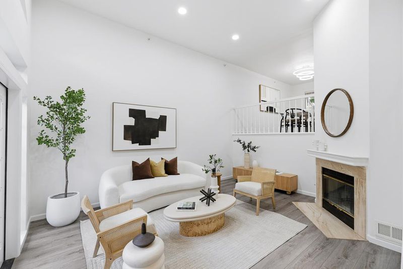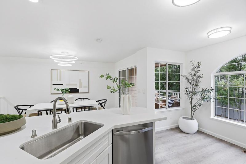 A rare contemporary residence in a peaceful Palo Alto community, moments from top dining, transit, and tech! Located in a very quiet and safe community, this contemporary home features soaring ceilings, abundant natural light, and a thoughtfully designed, open layout. The living room offers vaulted ceilings and a cozy fireplace, while the kitchen/family room combination with breakfast bar creates an inviting space for everyday living and entertaining. Enjoy indoor-outdoor living with a spacious front patio and balconies off the kitchen and primary suite. The beautifully landscaped community showcases colorful flower gardens in spring and summer, along with a well-maintained pool and spa. An oversized attached two-car garage provides ample storage. Just steps from San Antonio Center for coffee, dining, and groceries, and within walking distance to Google X. Easy access to Stanford, Highway 101, Caltrain, and major tech campuses. Served by award-winning Palo Alto schools.