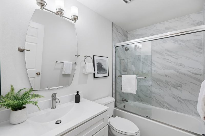 - Shower over Tub - 1, Double Sinks, Shower and Tub, Tub in Primary Bedroom, Updated Bath, Primary - Oversized Tub, Primary - Stall Shower(s)