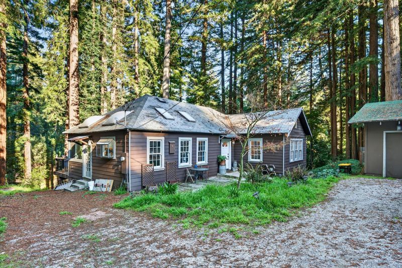 Welcome to 15194 Big Basin Way in Boulder Creek. This rare property offers two homes on nearly an acre of lush forested land with private creek frontage and river access. Winding paths through towering redwoods create a serene mountain retreat that feels secluded while remaining close to town. Both homes include indoor laundry and decks overlooking the surrounding forest. The main A-frame residence is approximately 1,775 sq. ft. and features three bedrooms and two bathrooms. Large windows and soaring ceilings fill the open living area with natural light and forest views. The remodeled kitchen includes quartz and butcher block countertops, stainless steel appliances, custom cabinetry, a Sub-Zero refrigerator, and a pantry. The home has also benefited from meaningful functional and infrastructure upgrades, reflecting thoughtful improvements that extend well beyond cosmetic updates. The second home offers approximately 1,185 sq. ft. with a spacious bedroom, bathroom, and flexible living area, along with an updated kitchen featuring a live-edge wood countertop and garden window. An oversized driveway, three-car garage, easy Highway 9 access, proximity to Big Basin, and a short drive to downtown Boulder Creek complete this exceptional property.