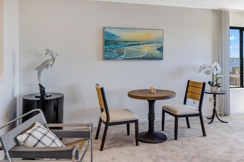 The rooftop deck is a true showstopper offering unobstructed, 180-degree views of the Pacific Ocean and the iconic Monterey coastline. Watch sailboats drift across the bay, spot whales playing in the surf, and soak in the golden hues of sunset as they melt into the horizon. Step inside this beautifully maintained 2-bedroom, 2-bathroom condo perched above the sparkling shores of Monterey Bay and discover an open-concept layout that maximizes natural light and ocean breezes. The spacious living area flows seamlessly into a modern kitchen, ideal for entertaining or quiet evenings at home. Each bedroom is a serene escape, with ample closet space and ensuite bathrooms. You will enjoy the private balcony for morning coffee or sunset cocktails. With 1,214 square feet of thoughtfully designed living space, this coastal retreat offers the perfect blend of comfort, style, and convenience.