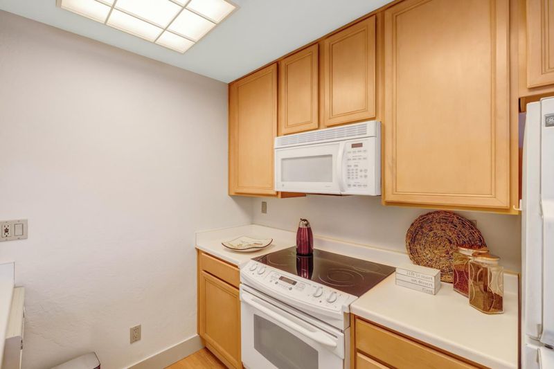 - 220 Volt Outlet, Cooktop - Electric, Countertop - Formica, Dishwasher, Exhaust Fan, Hood Over Range, Microwave, Oven - Electric, Refrigerator