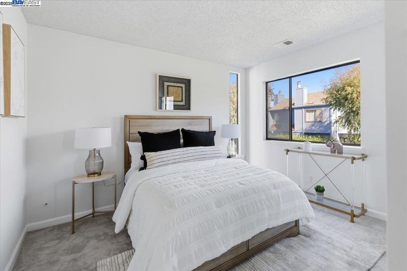 This stunning 3 Bedroom and 2.5 Bath End-unit Townhome offers modern style, comfort, and convenience in one of Hayward’s most sought-after neighborhoods. The bright & open floor plan features brand-new Luxury Vinyl SPC waterproof flooring and newly carpeted on the stairs and in all bedrooms. The beautifully remodeled kitchen showcases sleek quartz countertops, stainless steel appliances—including a refrigerator, dishwasher, and a brand-new range. The spacious living room, complete with a cozy fireplace and abundant natural light, creates a warm and inviting atmosphere perfect for entertaining or relaxing. Upstairs, both bathrooms have been tastefully renovated with elegant tile flooring, quartz countertops, updated vanities, refreshed tub and shower doors. Enjoy your private patio for morning coffee or evening unwinding. Additional highlights include an in-unit Laundry Room with extra storage and an attached side-by-side two-car Garage . The community offers a sparkling pool and clubhouse, and the location can’t be beat—just minutes from Target, supermarkets, shopping, Kennedy Park, dining, BART, and major freeways. Must See!!