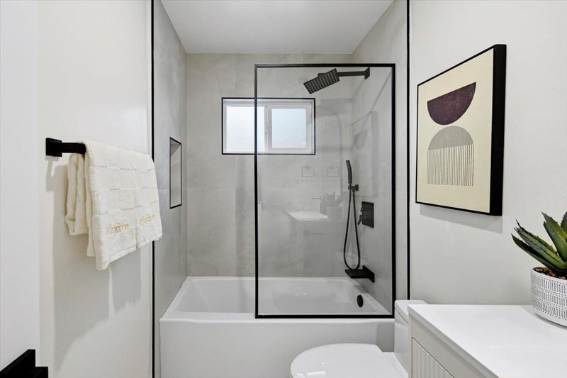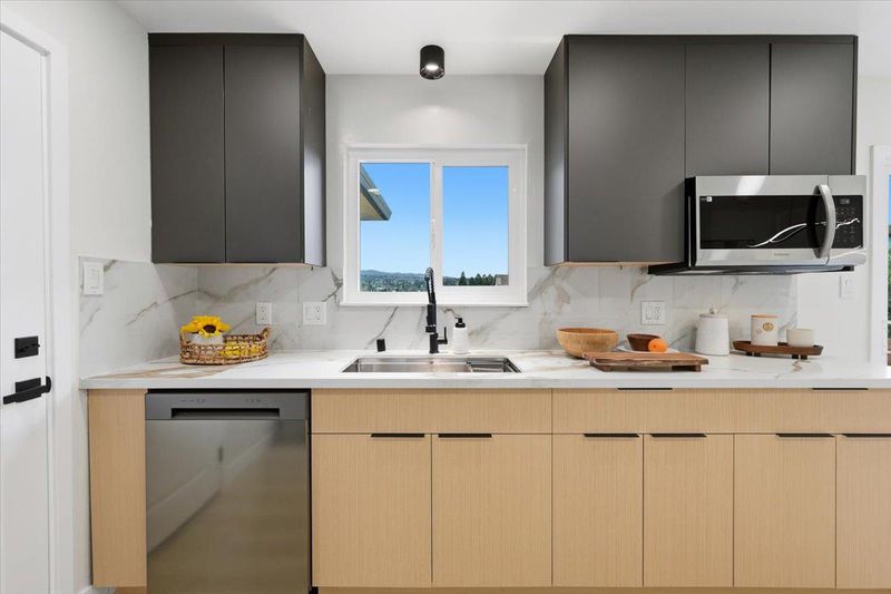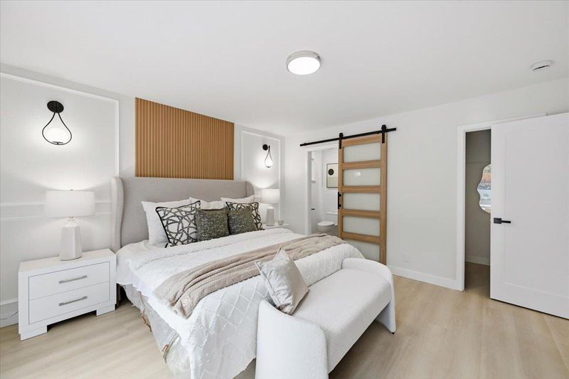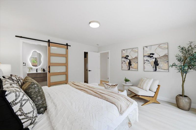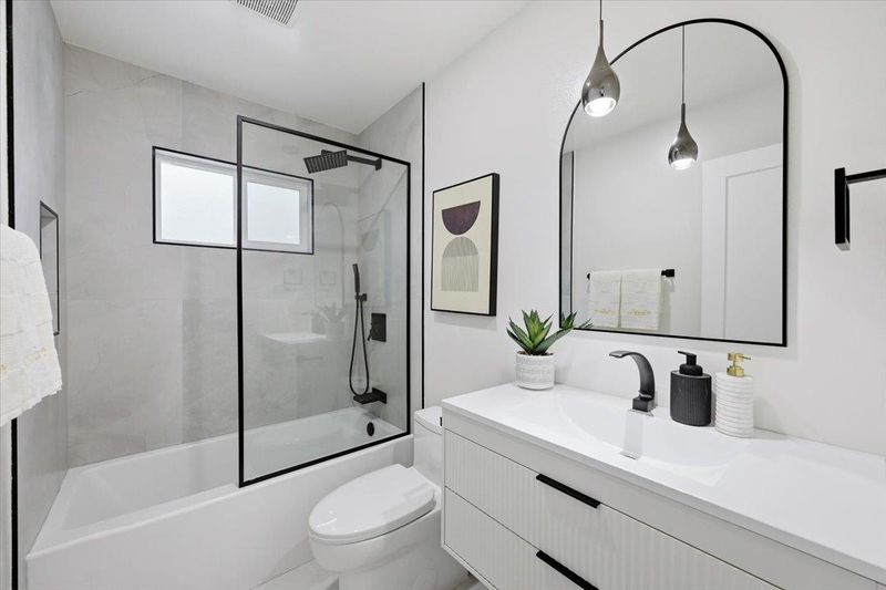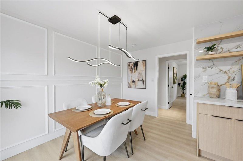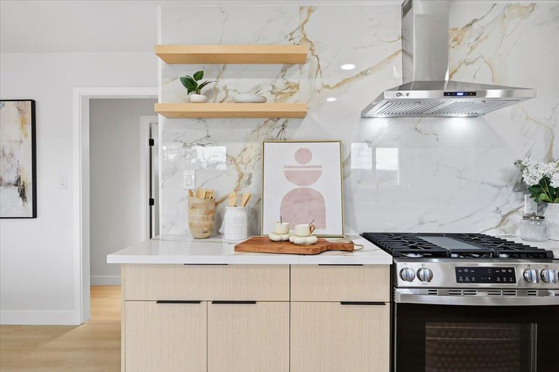 Tastefully remodeled Castro Valley home blending modern design with quality craftsmanship throughout. This move-in-ready residence features a bright layout filled with natural light, highlighted by new SPC flooring, recessed lighting, and a refined designer color palette that creates a warm yet sophisticated atmosphere. The spacious living room is a true centerpiece, offering abundant natural light, a striking fireplace, a custom accent wall, and artistic lighting that adds elegance and ambiance perfect for relaxing or entertaining. The stunning remodeled kitchen serves as the heart of the home, showcasing sleek cabinetry, quartz countertops, and stainless steel appliances. The primary suite provides a private retreat with a full ensuite bathroom and a calming custom accent wall. Updated bathrooms feature contemporary tile work, upgraded vanities, spa-inspired finishes for a clean, modern feel. Additional improvements include new windows and doors, fresh interior and exterior paint, providing peace of mind for years to come. The private yard offers generous room to relax, entertain, or personalize. Ideally located near top-rated schools, parks, shopping, convenient commuter routes, this home delivers stylish, turnkey living in one of Castro Valleys most desirable neighborhoods.