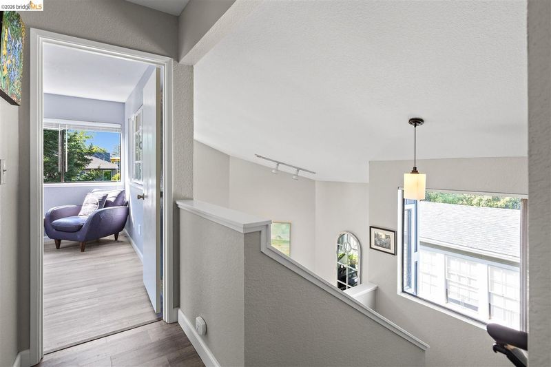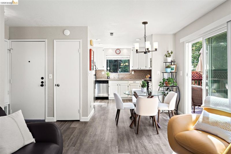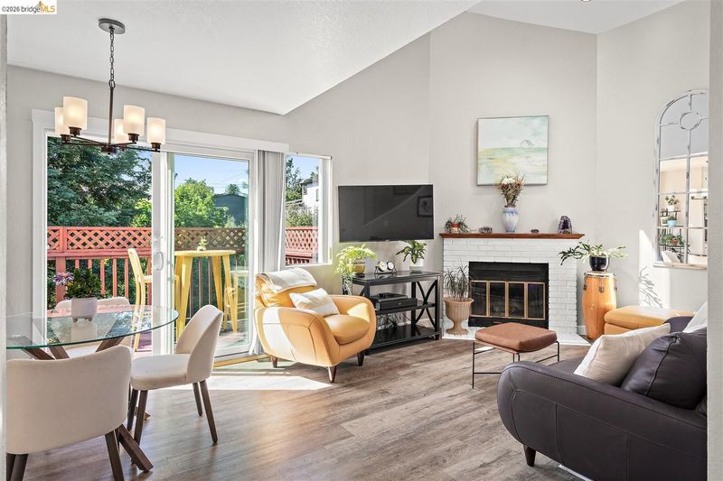 A rare end-unit sanctuary perched above a tranquil creek with sunset views, offering privacy and a serene, nature-filled setting. This light-filled 3BD/1.5BA, 1,310 SF residence lives like a secluded townhome in Oakland's vibrant Laurel District. The main level showcases soaring ceilings and abundant natural light, creating an airy living and dining space anchored by a cozy fireplace. Sliding glass doors open to a spacious redwood deck - perfect for morning coffee or effortless entertaining. The updated kitchen features generous cabinetry, ample prep space, and stainless steel appliances, seamlessly connecting to the dining area. Fresh interior paint and durable waterproof plank flooring enhance the home's refined, move-in-ready appeal. Upstairs, well-proportioned bedrooms offer a peaceful retreat. Additional highlights include in-unit laundry, an attached garage, and exceptional storage space including a LARGE under-home area. Set within a well-maintained community with low HOA dues, just moments from Laurel District shops, cafes, parks, and commuter routes - this is where convenience meets quiet luxury. WEBSITE: 3687maple9.com | OPEN HOUSE: SAT & SUN, APRIL 25-26, 1-4PM