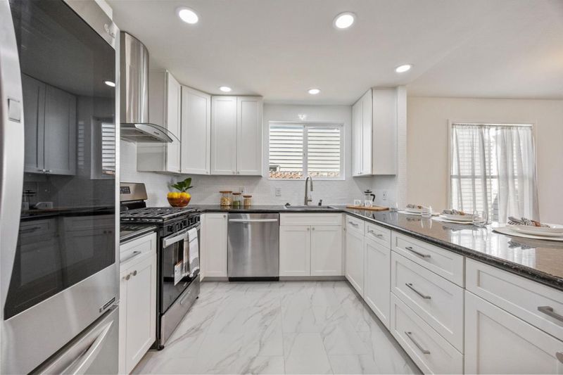 - Countertop - Granite, Dishwasher, Hood Over Range, Oven Range - Gas, Refrigerator
