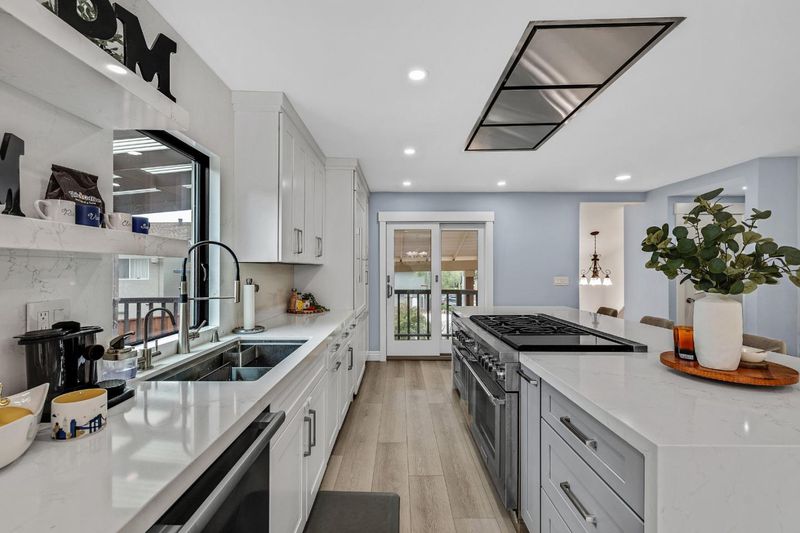 Welcome to this beautifully remodeled 3-bedroom, 3-bathroom home in the sought after Park Pacifica neighborhood. Situated at the end of a court, this home offers a comfortable living experience with a variety of features to enjoy. The kitchen is a chef's delight, equipped with quartz countertops, commercial grade appliances including a Thermador gas/electric oven/range, Miele refrigerator, Miele dishwasher, Viking microwave, hood over range, and a modern island with waterfall quartz top that provides ample space for meal preparation. The flooring throughout the home includes luxury vinyl plank floors, tile, and carpet, offering both style and comfort. Enjoy cozy evenings by the quartz wrapped fireplace in the living area, perfect for relaxing or entertaining guests. Downstairs you will find a large bonus room, full bathroom and walk-in closet that can be used as a second primary bedroom, guest room or family hang out space. The options are endless! Lutron throughout the home you control from your smartphone. Laundry is a breeze with gas hookups in a separate laundry room with additional storage. Additional amenities include a 2-car garage and an existing shed, providing extra space for storage or hobbies. Don't miss out on this wonderful opportunity!