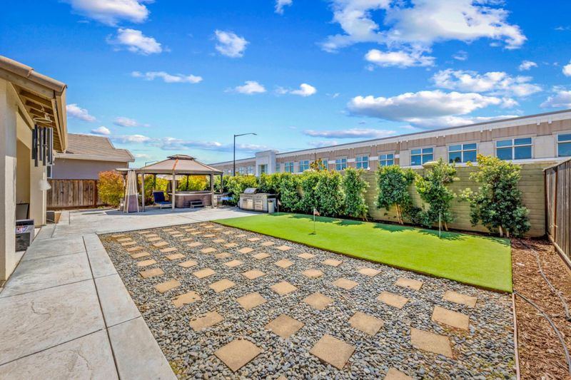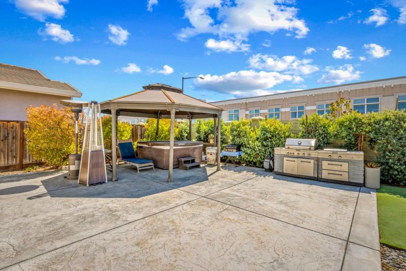 Spacious 4-bedroom, 3.5-bath residence in the desirable Twin Creeks neighborhood of northwest Gilroy, near Christopher High School. Offering 3,065 sq ft of living space on a 7,020 sq ft lot, this two-story home features soaring ceilings and a thoughtfully designed floor plan. A first-floor bedroom with en suite bath is ideal for guests or multi-generational living. The open-concept layout showcases a gourmet kitchen, formal dining room, and living room with four hardwired Sonos speakers, surround sound capability, and a striking accent wall. Seamless indoor-outdoor living continues in the California room with gas fireplace, stamped concrete patio, putting green, and private hot tub retreatperfect for year-round entertaining. The primary suite features two walk-in closets and a spa-inspired en suite bath. Additional highlights include an upstairs loft/flex space, upstairs laundry, tankless water heater, extra-deep garage, and fully owned solar. Built in 2016. A private gated entrance to Christopher High School serves the neighborhood. Tucked away with limited through traffic for a quieter, more private setting.