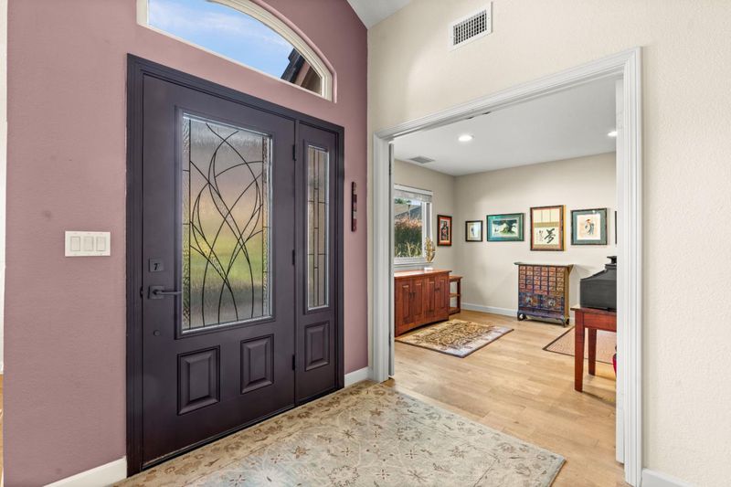 One of the largest single family detached residence in the Villages. This home has a list of amenities a mile long. Over 100K additional improvements over the last couple of years alone. Live amongst the trees in a private location that backs to undeveloped ranchland with spectacular views. There is a huge wrap around deck as well as planter areas for those with a green thumb. remodeling and upgrades include, skylights, Chef kitchen with 6 burner Thermador gas stove, Kitchen Island with breakfast bar, filter water at the kitchen sink, 2 bedrooms and 2 offices/third bedroom, beautiful prime bathroom with heated floors and walk-in shower. Hall bath has beautiful unique designer tile that you must see in person (picture does not do it justice). 2 fireplaces, wood flooring and LED lighting throughout, Built-ins, Double pane windows and a garage with storage shelving, a floored attic, epoxy coating on garage floor and a newly installed extensive Solar system with Battery, EV charger Level-2. All of the insulation was replaced, new electric heat pump system, water heater and more. A complete solar system with batteries just installed. Beautiful location and a beautiful home. The Villages is a 55+ age restricted development with golf, tennis, pickle ball, bocce, 4 pools etc.