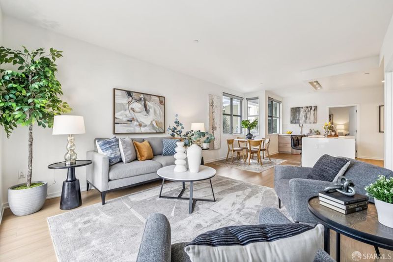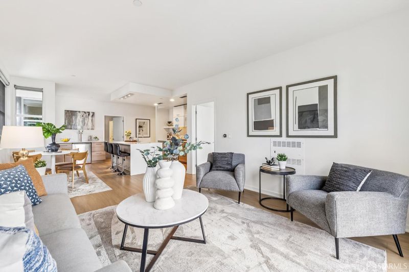 Step inside this sun-drenched, corner 2-bedroom, 2-bathroom condominium where modern design meets effortless livability. A formal entry hallway sets the tone, complete with a custom built-in wood bench and an oversized coat closet both stylish and supremely practical. Overlooking a beautifully landscaped courtyard, this southeast-facing residence is wrapped in windows that flood the home with natural light all day long. The open-concept living room, dining area, and kitchen create an ideal setting for both lively gatherings and relaxed evenings in. At the heart of the home, the chef's kitchen delivers on both form and function: a quartz-topped center island with dining bar, stainless sink, Bosch dishwasher, sleek modern cabinetry with contemporary tile backsplash, Bosch gas cooktop with electric oven, and a dual-door Bosch refrigerator. A custom wet bar with kegerator and additional freezer takes entertaining to the next level because hosting should always be this easy. The living room is framed by dramatic floor-to-ceiling windows, while the primary suite offers a serene retreat with an outfitted walk-in closet and a renovated spa-like bath featuring an oversized tiled shower with rain showerhead, glass enclosure, Toto toilet, and a wall-hung vanity accented by a brand-new light fixture. The guest bedroom is equally inviting with floor-to-ceiling windows and a generous outfitted closet, complemented by a stylish guest bath with soaking tub, rain showerhead, and modern finishes. Contemporary, welcoming, and thoughtfully designed, this home proves that sophisticated living can still be fun. Additional Unit Highlights: in-unit washer & dryer, custom paint throughout, newer wide-plank hardwood flooring, cozy carpeted bedrooms, double-paned windows, recessed lighting, modern roller shades throughout, quadruple-zoned Nest thermostats, one-car parking. Building Amenities: elevator access to a spectacular shared view roof deck, hi-end fitness center, bicycle storage room, park-like grounds, dog-friendly location with street parking galore. HOA Fees: $710/month which include water, garbage, gas, building insurance, professional HOA management, common area maintenance, and reserve fund allocation.