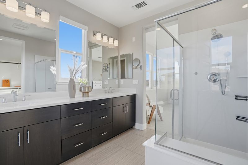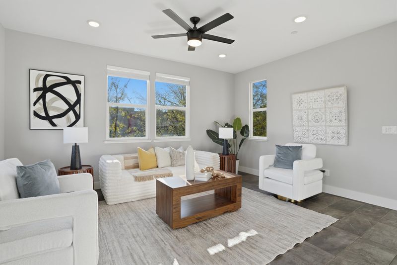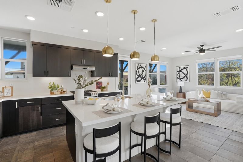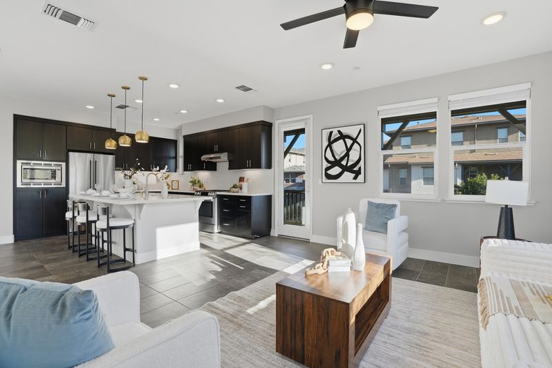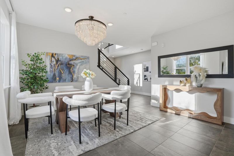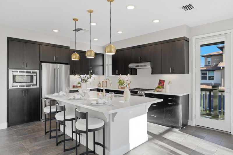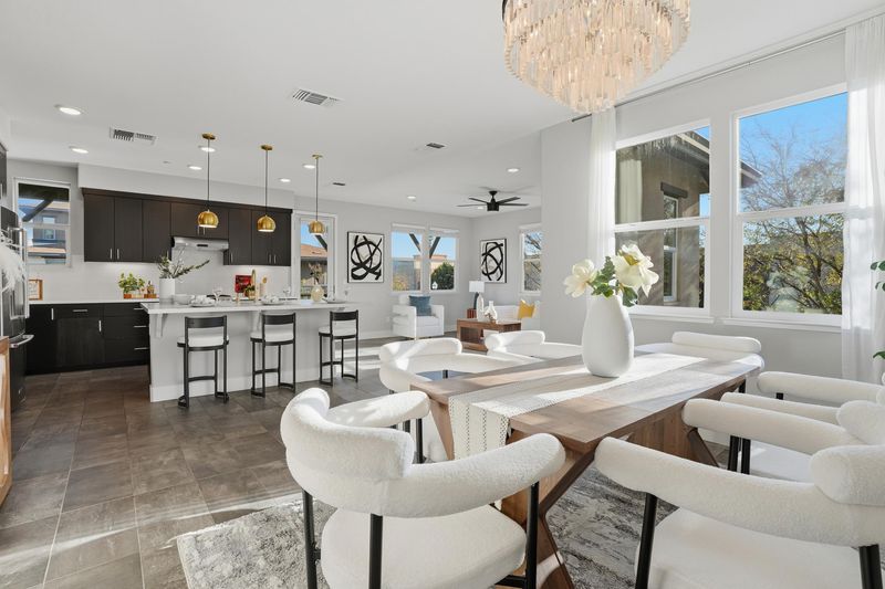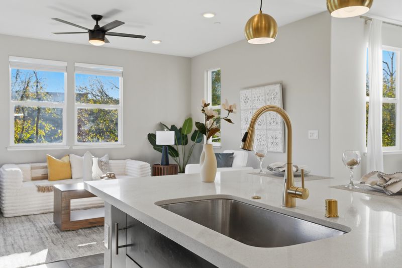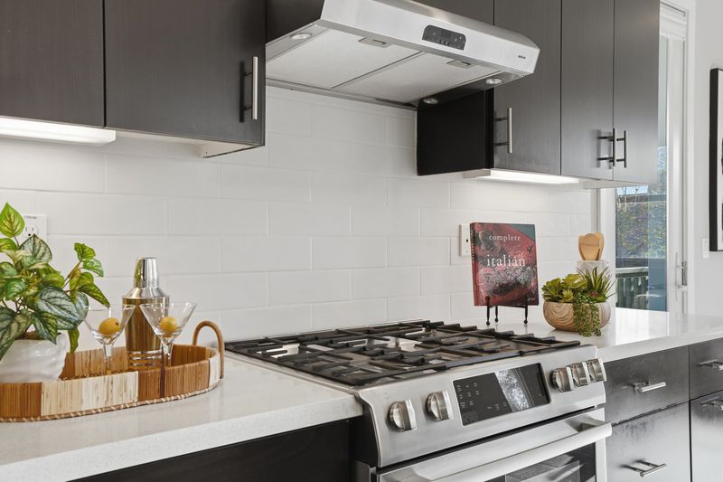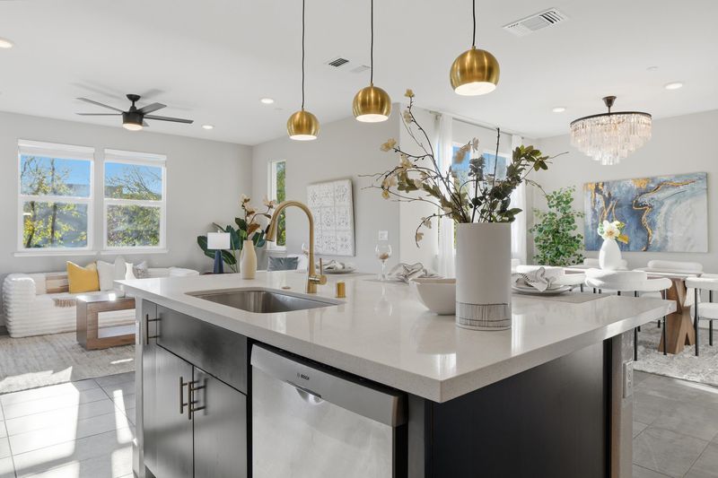 This prime corner townhouse showcases a sun-drenched, open-concept floor plan that blends comfort and elegance. Dappled sunlight and tranquil, tree-lined views fill the expansive great room, while mature greenery provides exceptional privacy. Constructed with superior materials—including high-quality windows and insulation—the home offers a quiet, serene living environment. The highly sought-after Model 4 layout seamlessly integrates the kitchen, dining, and living areas, while still allowing for distinct, intimate spaces. Just nine years young, the home lives like new and delivers exceptional value, with over $75,000 in thoughtful upgrades. Highlights include statement chandeliers, a modern open stairwell, custom window shutters, premium tile flooring, dual-zone air conditioning, built-in Ethernet wiring, a tankless water heater, and a smart-enabled garage. The chef’s kitchen is both stylish and functional, featuring Bosch and newer KitchenAid appliances, a five-burner gas range, deep stainless-steel sink, and a hands-free brass faucet—ideal for both entertaining and everyday living. Just off the kitchen, a generous patio provides the perfect setting for outdoor dining and weekend BBQs. Upstairs, the primary suite offers a private retreat with a spa-inspired bath, soaking tub