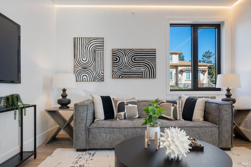 This newly built Veev home in Sonoma offers modern construction, advanced smart-home technology, and energy-efficient design in the heart of Wine Country. Located close to dining, shopping, and everyday amenities, it combines convenience with low-maintenance living. Veev homes are known for their High-Performance Surface (HPS) walls for durability, European tilt-and-turn windows for improved insulation and ventilation, and integrated linear LED lighting. Energy systems include solar panels, a Tesla Powerwall battery backup, room-specific HVAC control, and pre-wiring for two electric vehicle chargers. The open floor plan connects the kitchen, great room, and outdoor living areas for seamless flow. The kitchen features sleek cabinetry, a large solid-surface island, wine refrigerator, and a dedicated coffee bar/pantry space. Upstairs, a second family room provides flexible living space, while the primary suite offers privacy and separation from secondary bedrooms. Sonoma is known for its historic Plaza, renowned wineries, farm-to-table dining, outdoor recreation, and year-round community events, offering residents small-town charm with convenient access to Napa, Marin, and the Bay Area. Photos may represent a similar home.