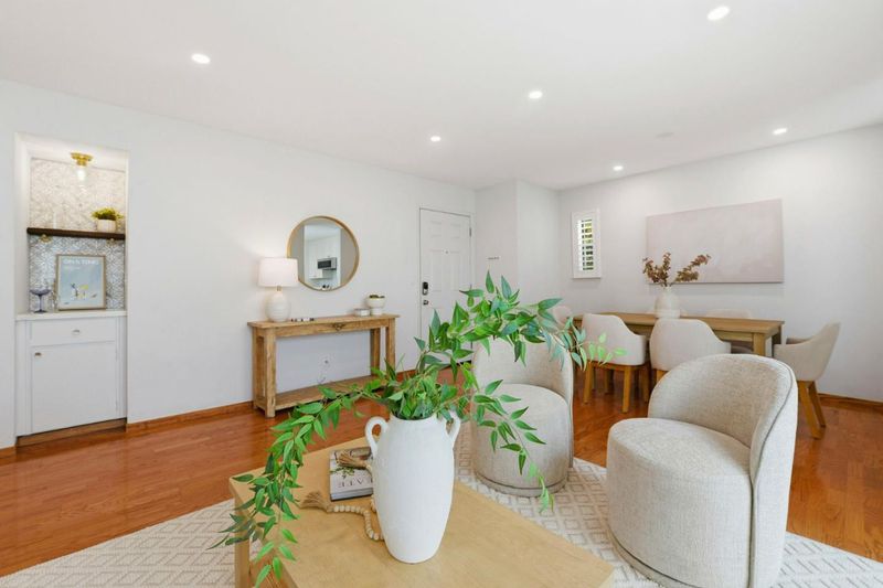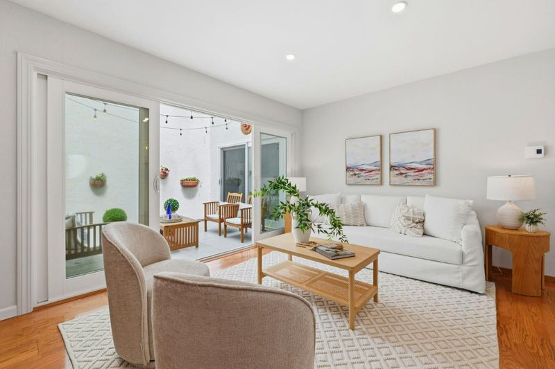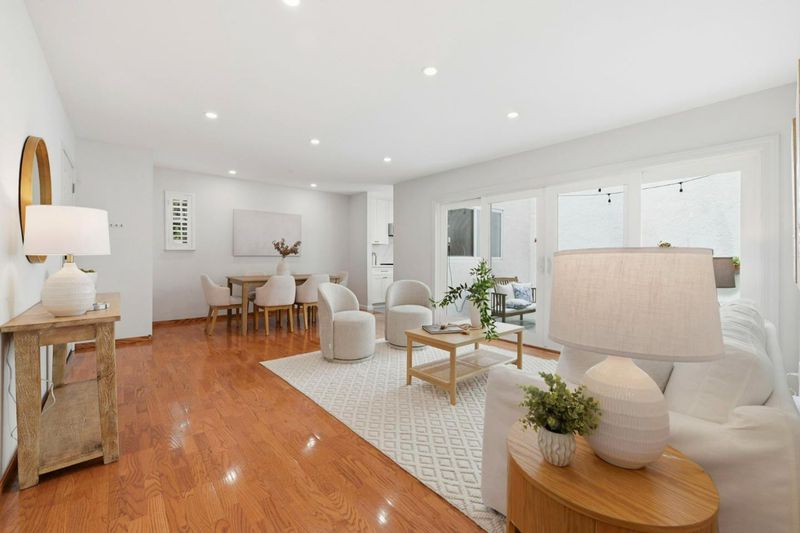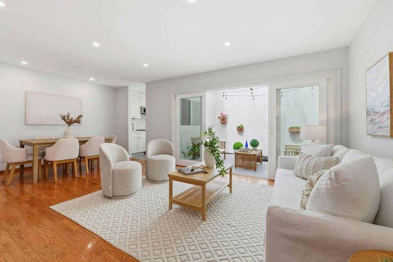 This light-filled 2BD/1BA condo features wood flooring throughout, a remodeled kitchen and bath, and oversized sliding doors opening to a private atrium patio-perfect for seamless indoor-outdoor living. Enjoy in-unit washer/dryer and custom closets.