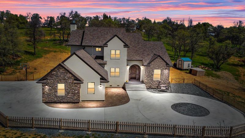 Spectacular views of the foothills with Luxury Living in this exceptional property. Modern ranch estate on 5 fully fenced acres just outside historic Angels Camp. Built in 2022, this high-efficiency home blends contemporary design, sustainability, and total independence—with solar power, battery storage, generator backup and a private well providing seamless comfort. Step inside to an open-concept great room framed by panoramic country views, vaulted ceilings, and premium finishes throughout. The chef’s kitchen features custom cabinetry, quartzite counters, and top-tier appliances. The 4 spacious bedrooms and 3.5 baths include a resort-style primary suite with a spa-inspired bath and large closet. Enjoy the outdoors year-round, level pad for shop or ADU, usable landscape, and ample space for RVs, animals, or future additions. Every inch of this home was designed for self-reliance, elegance, and peace of mind.