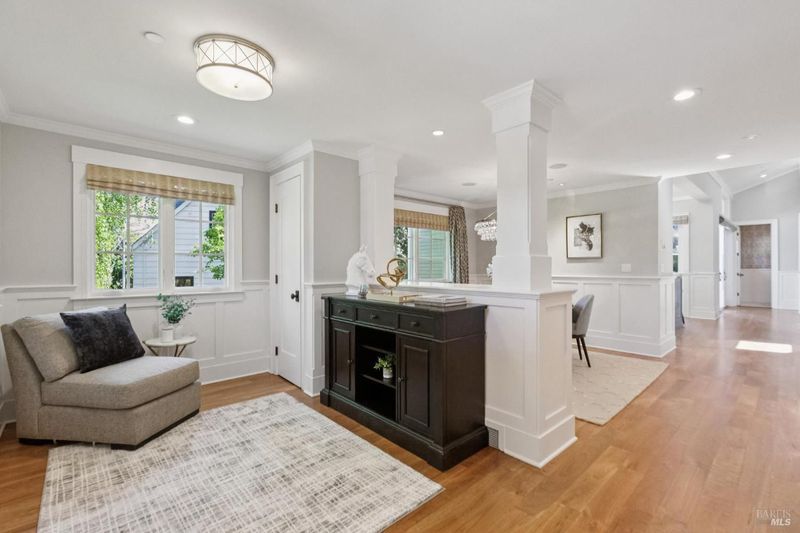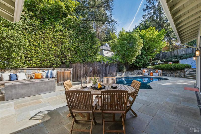 Never before has there been a home with this combination of timeless style, high quality, prime location and the opportunity to have more fun than you can imagine in your own backyard. Stepping into this home you are immediately impressed by soothing paint colors, the rich details of the wainscoting, built in cabinets and soaring ceilings with shiplap details. This is a home where you just feel good and you know that love and happiness is in your future here. The chef's kitchen features chunky marble countertops that feel like they will last a millennium, stainless steel appliances and an eat-in center island to gather around. All of this connects seamlessly with a soaring ceiling family room with built in entertainment system, and also opens to the fabulous and private back yard. This is where the fun begins with a glistening pool, a muli-use sport court, an outdoor kitchen, and multiple moment areas to enjoy with friends and family. You can look forward to making years of memories in this incredibly special one-of-a-kind back yard. The primary suite is blow you away gorgeous, featuring soaring ceilings, large sliders to access the yard, a walk-in closet, and a spa like bathroom that Ceasar would envy. On this same level are two generous bedrooms, a charming dual sink hall bathroom and wow! level powder room. Downstairs is a cozy fourth bedroom which is perfect for guests, an au pair, a home office, or a teenager's lair. Wine lovers will delight in the wine storage area next to the laundry room. No need to worry about high energy bills as this home offers solar, two Tesla power-wall batteries in the spacious two car garage and a new high efficiency furnace, not to mention A/C for those dog days of summer heat. This stunning home is located just blocks from coveted downtown Larkspur offering wonderful dining and shopping opportunities. Award winning schools, trail access to Mt. Tam and a welcoming community neighborhood make this a 10 out of 10 home that you won't want to miss.