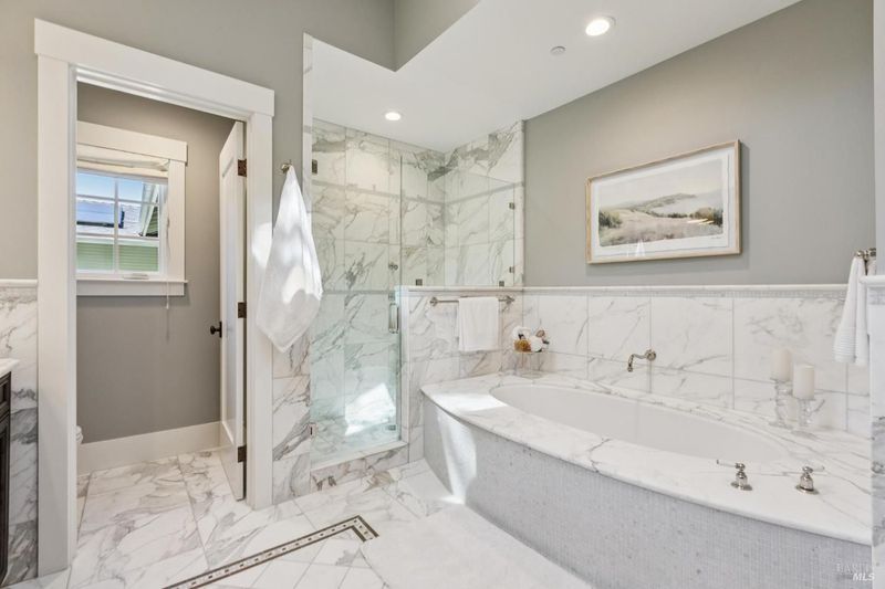 - Double Sinks, Low-Flow Toilet(s), Marble, Radiant Heat, Shower Stall(s), Soaking Tub, Window
