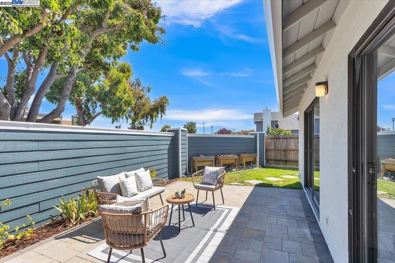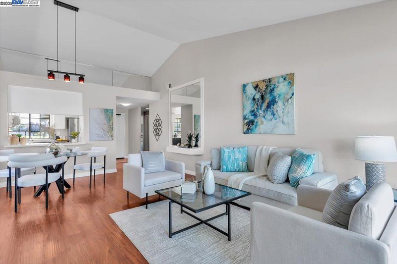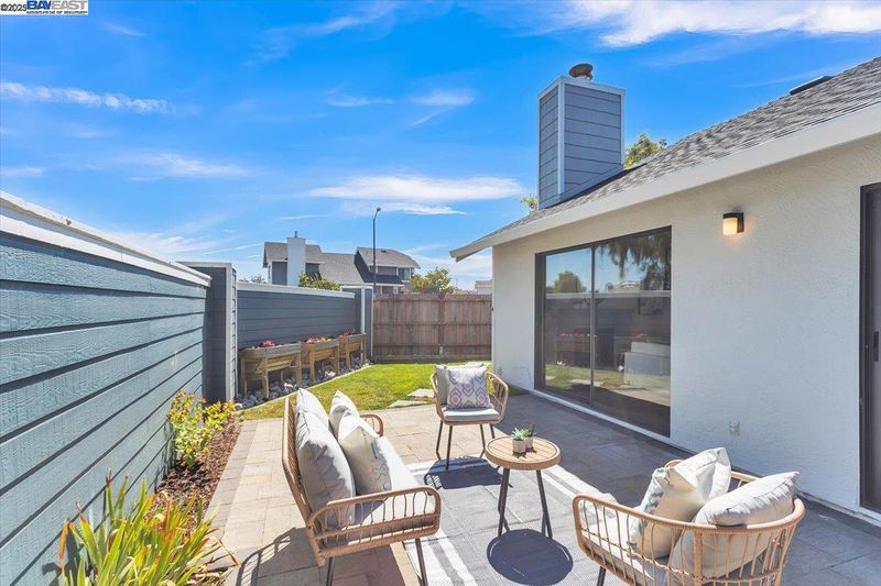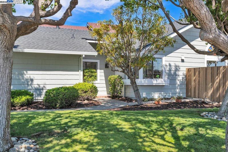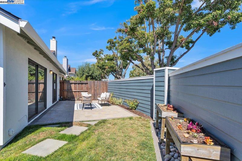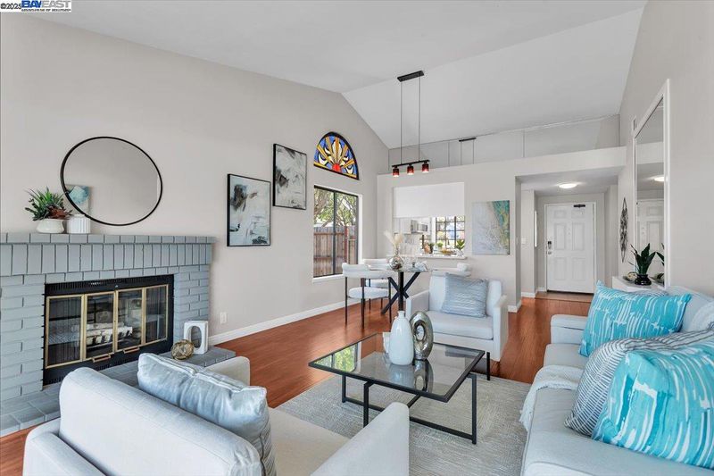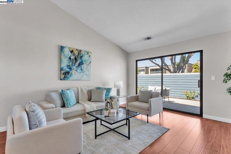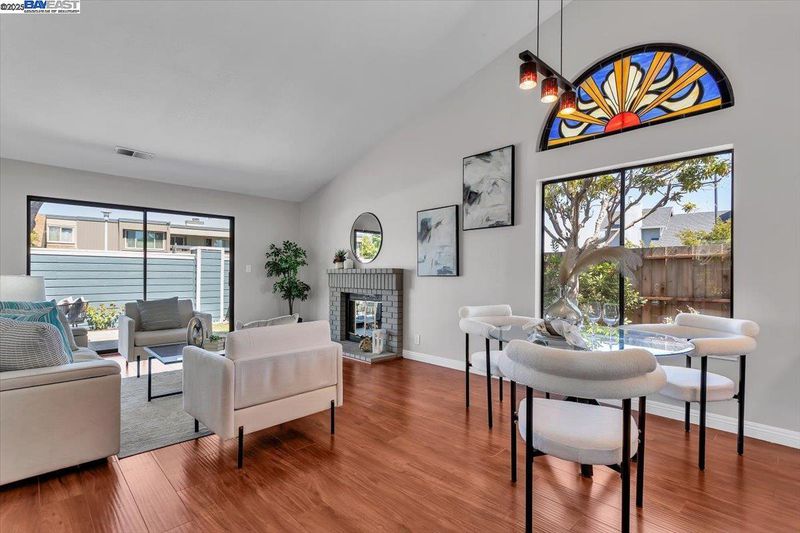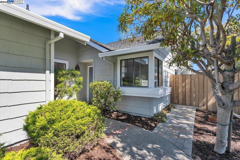 GORGEOUS SINGLE LEVEL Bayfarm detached home on a sunny corner lot has been thoughtfully updated inside and out, offering both modern and timeless style. A new roof, fresh exterior paint set the stage, while vaulted ceilings and abundant natural light create an open, airy feel. The open living/dining room is anchored by a cozy fireplace and slider that extends the living space outdoors, where a low-maintenance backyard and side yard provide room to relax, garden, or entertain. The kitchen shines with quartz countertops, newer stainless steel appliances, soft-close cabinetry, and a breakfast bar. The primary suite is a private retreat at the rear of the home, complete with soaring ceilings, dual custom closets, and direct access to the peaceful yard, while the second bedroom offers flexibility for guests.. Bathrooms have been stylishly refreshed w/new modern vanities, lighting, and fixtures. Engineered wood floors flow throughout, central A/C ensures year-round comfort, and the two-car garage boasts epoxy-coated floors, floating storage cabinets, and washer and dryer included.Set in a tranquil neighborhood with award-winning schools, nearby parks, shops, cafés, golf, and convenient access to the airport, this home blends comfort, function, and location into one seamless lifestyle.