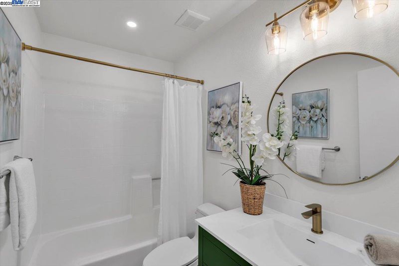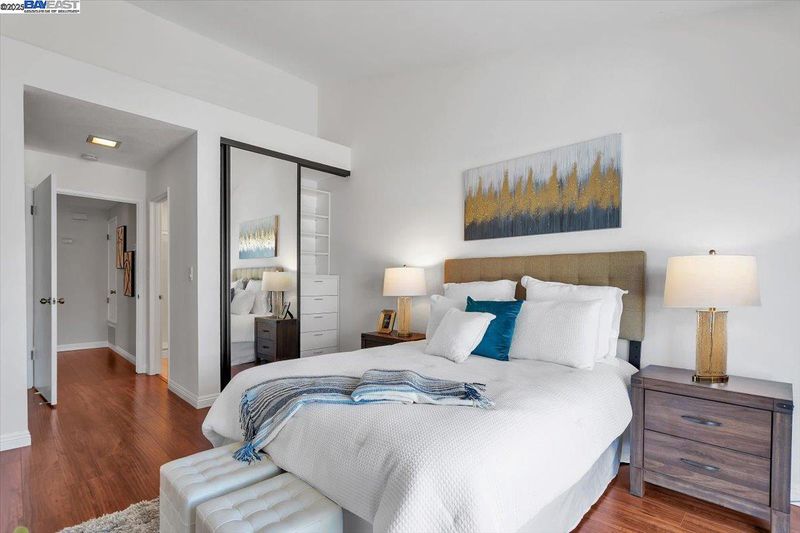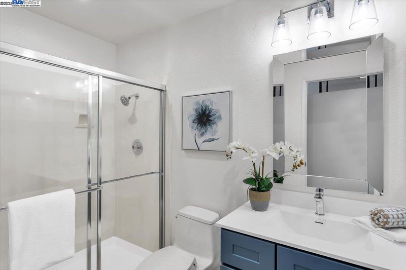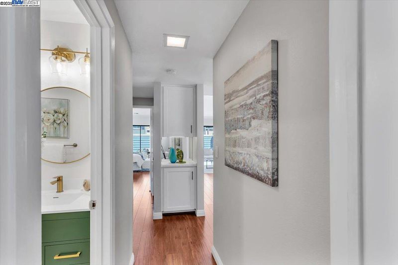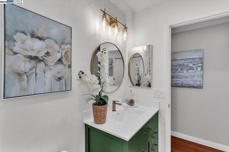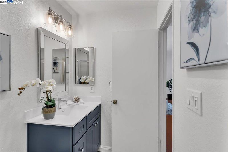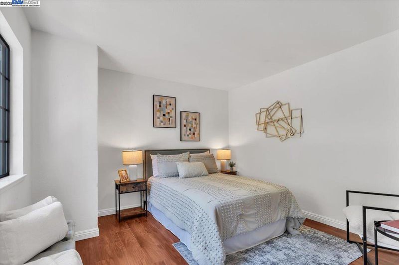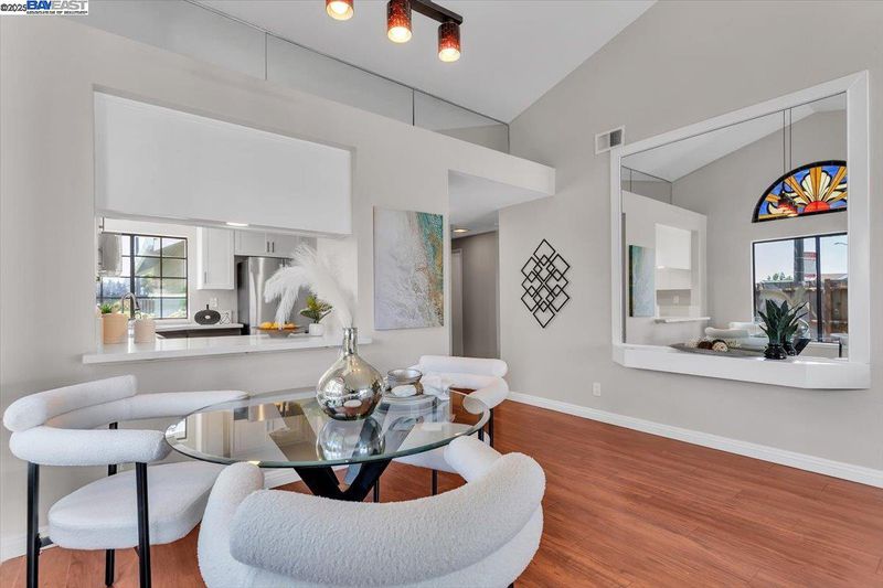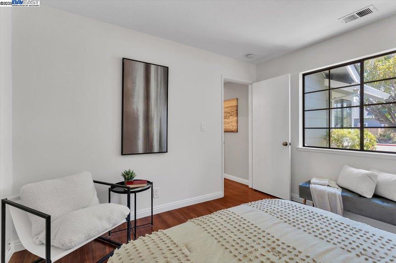 GORGEOUS SINGLE LEVEL Bayfarm detached home on a sunny corner lot has been thoughtfully updated inside and out, offering both modern and timeless style. A new roof, fresh exterior paint set the stage, while vaulted ceilings and abundant natural light create an open, airy feel. The open living/dining room is anchored by a cozy fireplace and slider that extends the living space outdoors, where a low-maintenance backyard and side yard provide room to relax, garden, or entertain. The kitchen shines with quartz countertops, newer stainless steel appliances, soft-close cabinetry, and a breakfast bar. The primary suite is a private retreat at the rear of the home, complete with soaring ceilings, dual custom closets, and direct access to the peaceful yard, while the second bedroom offers flexibility for guests.. Bathrooms have been stylishly refreshed w/new modern vanities, lighting, and fixtures. Engineered wood floors flow throughout, central A/C ensures year-round comfort, and the two-car garage boasts epoxy-coated floors, floating storage cabinets, and washer and dryer included.Set in a tranquil neighborhood with award-winning schools, nearby parks, shops, cafés, golf, and convenient access to the airport, this home blends comfort, function, and location into one seamless lifestyle.