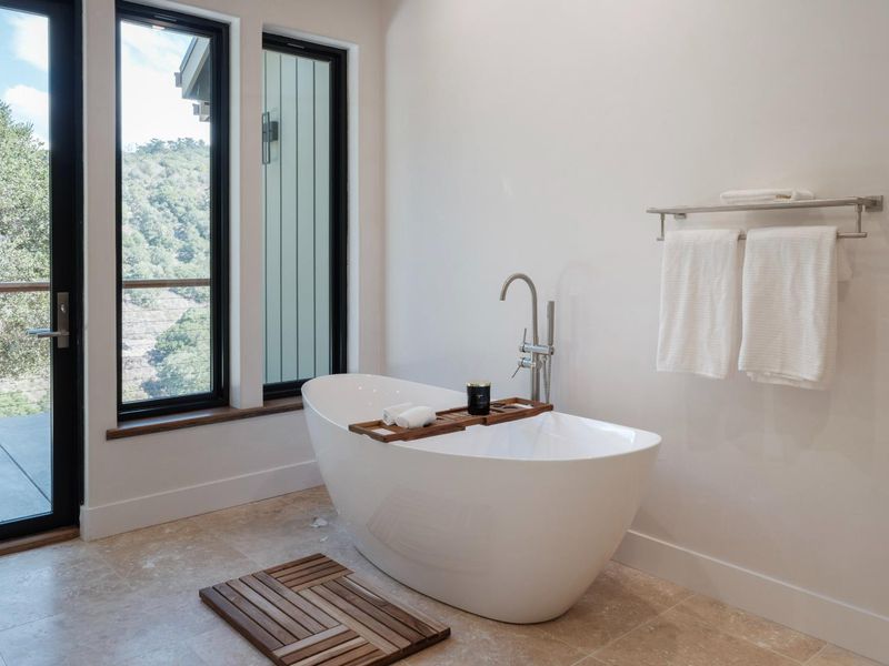 - Double Sinks, Full on Ground Floor, Half on Ground Floor, Marble, Primary - Oversized Tub, Primary - Stall Shower(s), Showers over Tubs - 2+, Stall Shower, Stone, Updated Bath