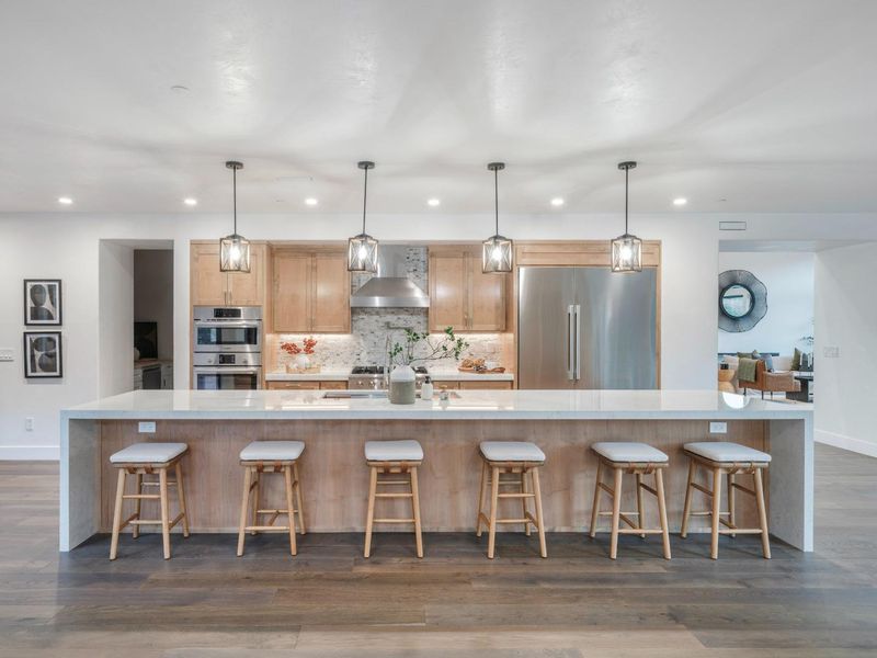 - Cooktop - Gas, Countertop - Quartz, Dishwasher, Freezer, Garbage Disposal, Island with Sink, Oven - Electric, Refrigerator