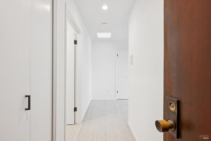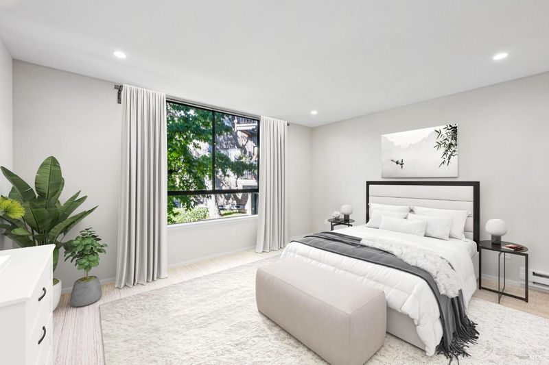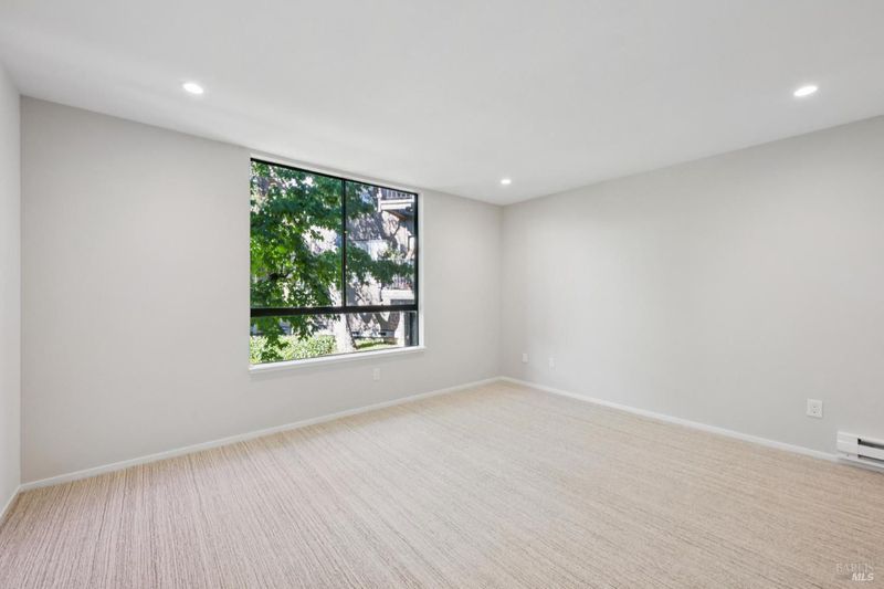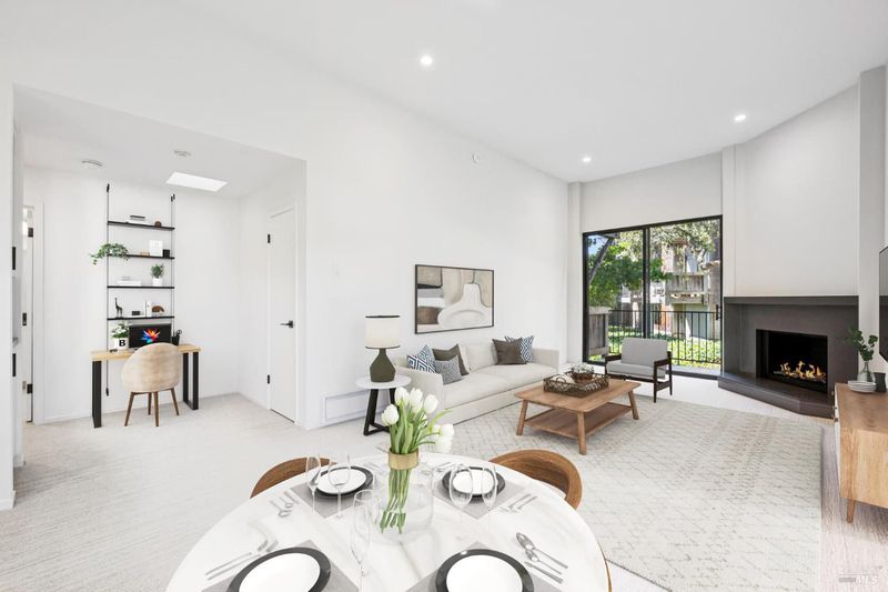 Experience elevated Mill Valley living in this newly renovated top-floor corner residence set within the tranquil Shelter Ridge community. Meticulously updated throughout, this sun-filled home blends contemporary upgrades with comfortable living in a serene, tree-lined setting. A chef-worthy kitchen awaits with all-new custom cabinetry, sleek Caesarstone countertops, stylish Sonoma Tileworks tile backsplash, new stainless-steel appliances, and modern plumbing fixtures complemented by new recessed LED lighting throughout. The open living area features fresh paint, new wool carpeting, and a beautifully updated fireplace wrapped in Caesarstone professionally inspected, repaired, and cleaned making it the perfect place to unwind. Retreat to the spa-like bathroom with Ann Sacks tile tub surround, new fixtures, custom vanity with Caesarstone countertop, Toto toilet, and a dramatic counter-to-ceiling mirror. Thoughtful updates continue throughout with new recessed LED lighting, new carpet, fresh paint, cleaned dryer duct, and new window screens. A private balcony overlooks lush, mature landscaping, offering a peaceful connection to nature. Enjoy conveniences including in-unit laundry, elevator access, private secured storage, and designated covered parking. Community amenities feature a sparkling pool, hot tub, and ample visitor parking. Located minutes from Hwy 101, downtown Mill Valley, parks, trails, and world-class outdoor recreation this turnkey home blends comfort, convenience, and refined style for effortless Marin living.