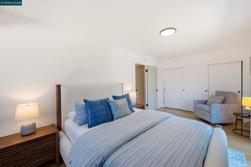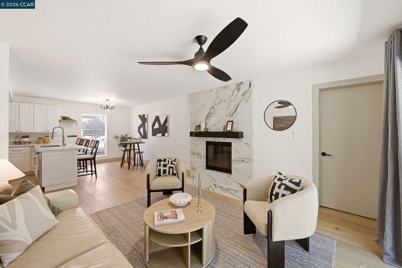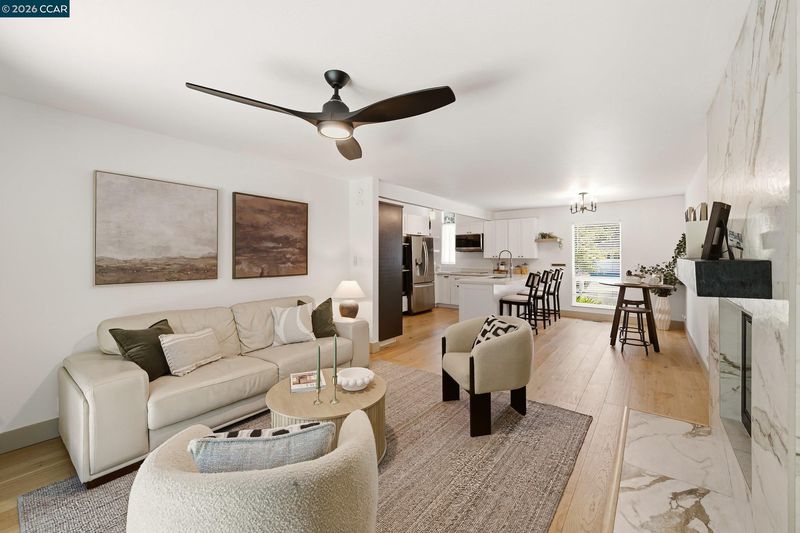 Hilltop in sought-after Palos Verdes, this fully renovated 4BD/2BA offers modern finishes and top-rated Walnut Creek schools (Acalanes Union HS District). Enjoy Mt. Diablo views, a private garden with redwoods and fruit trees, and nearby trails. Standout backyard with mature landscaping, view deck, and private trail. Inside: white oak floors, custom woodwork, updated fireplace, and a sleek kitchen with quartz counters and premium appliances. Spa-like baths include a curbless shower and soaking tub. Upgrades: new HVAC, water heater, and smart features. Light-filled primary suite, two living areas, and close to shopping, dining, BART, and freeways.
