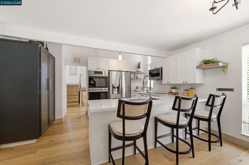 Situated atop a hill in the highly desirable Palos Verdes neighborhood, this fully renovated 4-bedroom, 2-bath home blends modern luxury with a serene natural setting. Thoughtfully updated with high-end finishes throughout, it’s also zoned for top-rated Walnut Creek schools within the Acalanes Union High School District. Enjoy panoramic views of Mount Diablo from multiple vantage points. Start your mornings in a private garden surrounded by redwoods and fruit trees, or explore nearby trails, streams, and ponds just moments away. The backyard is a true standout, featuring mature landscaping, a spacious view deck, and a private trail. Lush grounds include a variety of fruit trees and flowers, your own outdoor retreat. Inside, engineered white oak flooring, custom woodwork, and a sleek updated fireplace create a warm, modern feel. The kitchen offers custom cabinetry, quartz countertops, and premium appliances, while the bathrooms feature high-end finishes, including a curbless walk-in shower and deep soaking tub. Recent upgrades such as new HVAC, water heater, and smart home features add comfort and convenience. Unwind at sunset with hillside views or relax in the light-filled primary suite. With two separate living areas and a prime location near shopping, dining, BART, and freeway access, this home offers both privacy and everyday comfort. Don’t miss this rare opportunity.