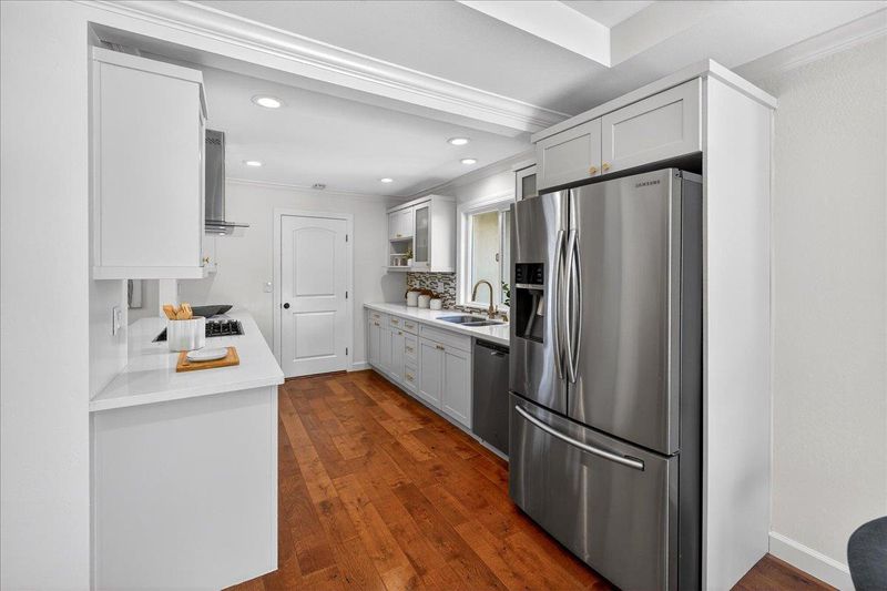 - Cooktop - Gas, Countertop - Quartz, Dishwasher, Exhaust Fan, Garbage Disposal, Oven - Built-In, Refrigerator